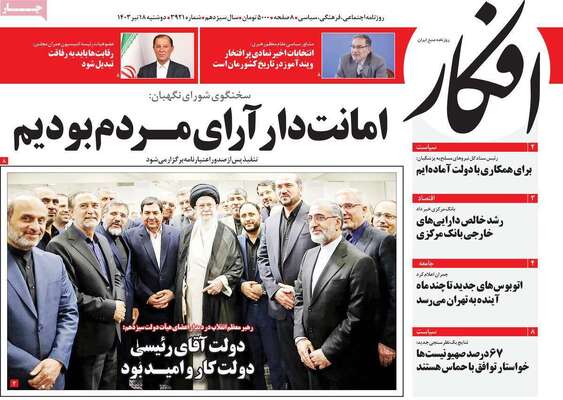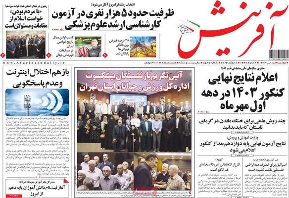 صفحه نخست روزنامههای دوشنبه ۱۸ تیر ۱۴۰۳ را در ادامه مشاهده میکنید.