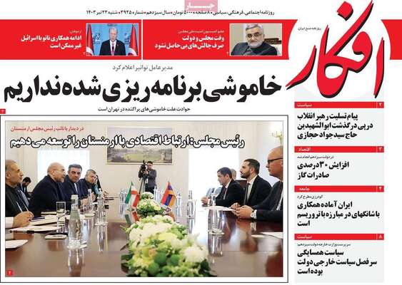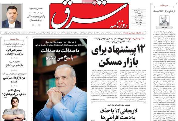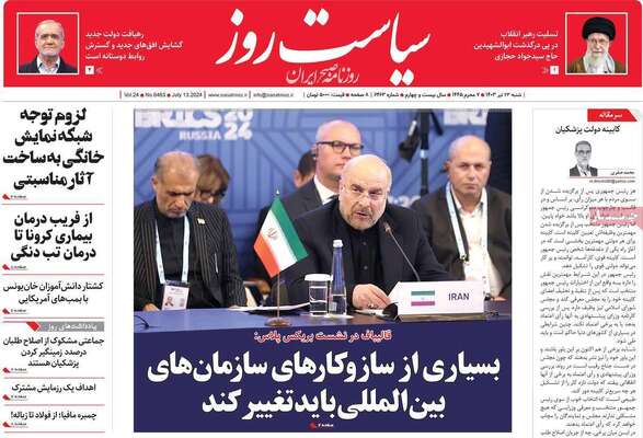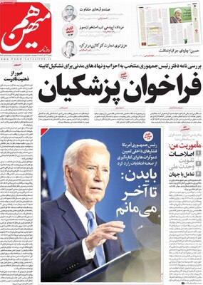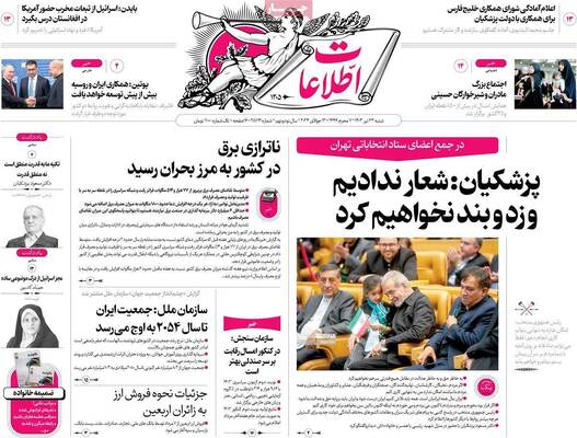 صفحه نخست روزنامههای شنبه ۲۳ تیر ۱۴۰۳ را در ادامه مشاهده میکنید.