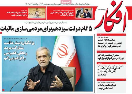 صفحه نخست روزنامههای چهارشنبه ۲۷ تیر ۱۴۰۳