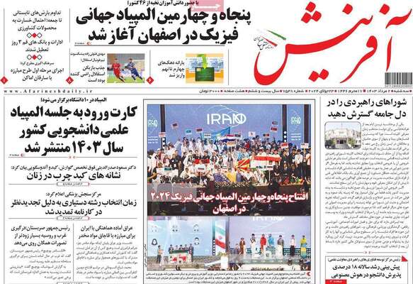 صفحه نخست روزنامههای سهشنبه ۲ مرداد ۱۴۰۳