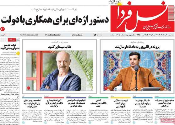 صفحه نخست روزنامههای سهشنبه ۲ مرداد ۱۴۰۳ را در ادامه مشاهده میکنید.