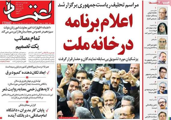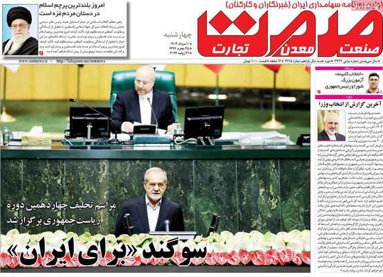 صفحه نخست روزنامههای چهارشنبه ۱۰ مرداد ۱۴۰۳ را در ادامه مشاهده میکنید.