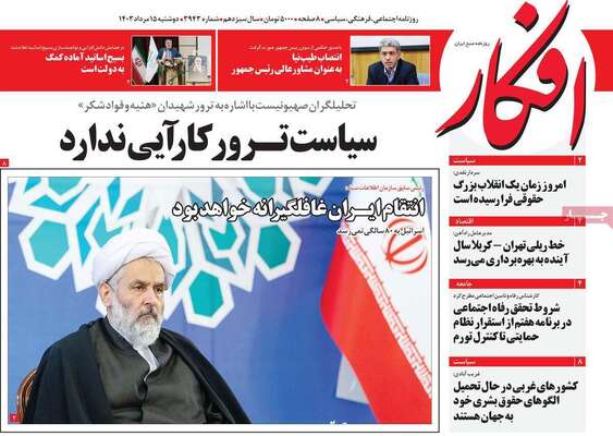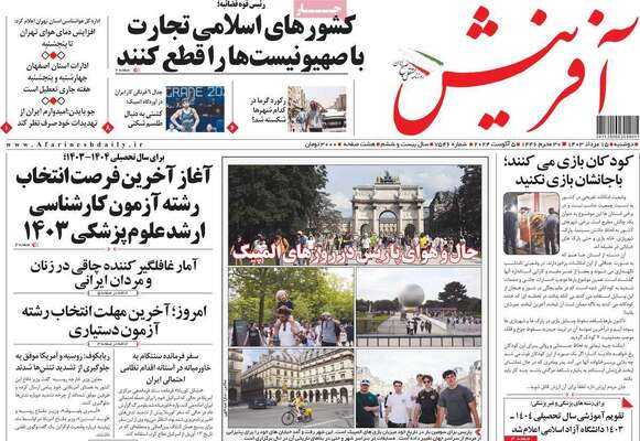 صفحه نخست روزنامههای دوشنبه ۱۵ مرداد ۱۴۰۳
