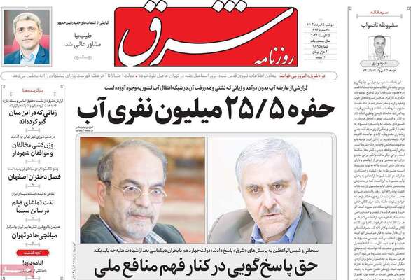 صفحه نخست روزنامههای یکشنبه ۳۰ آذر ۱۴۰۴