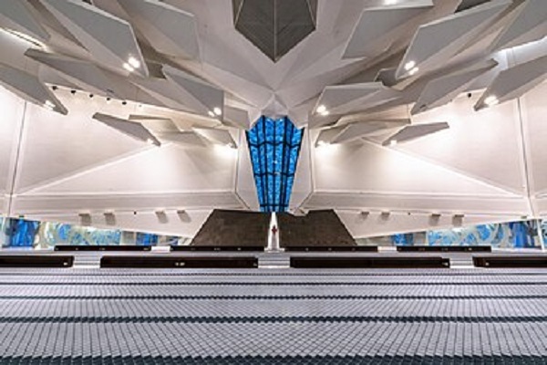 در این مسجد مدرن کشوهای الکترونیک برای نگهداری کفشهای تعبیه شده است، درهای شیشهای و خاص مسجد منحصر به فرد است و بر فراز صحن وسیع مسجد، گبند شیشهای مرتفعی قرار گرفته است که عظمتی چشمگیر دارد.