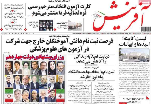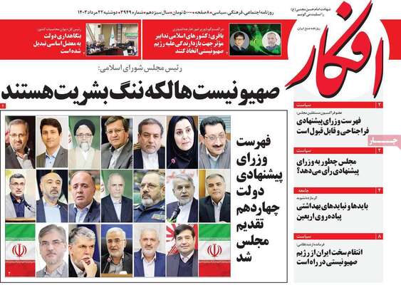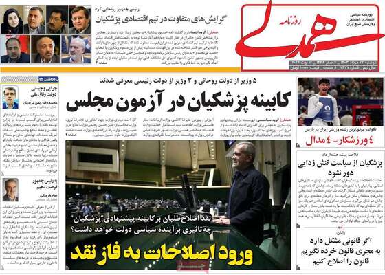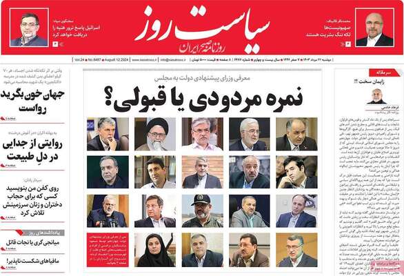 صفحه نخست روزنامههای دوشنبه ۲۲ مرداد ۱۴۰۳