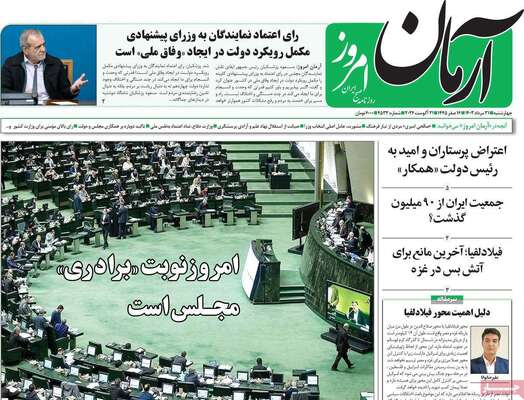 صفحه نخست روزنامههای چهارشنبه ۳۱ مرداد ۱۴۰۳