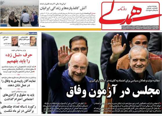 صفحه نخست روزنامههای چهارشنبه ۳۱ مرداد ۱۴۰۳ را در ادامه مشاهده میکنید.