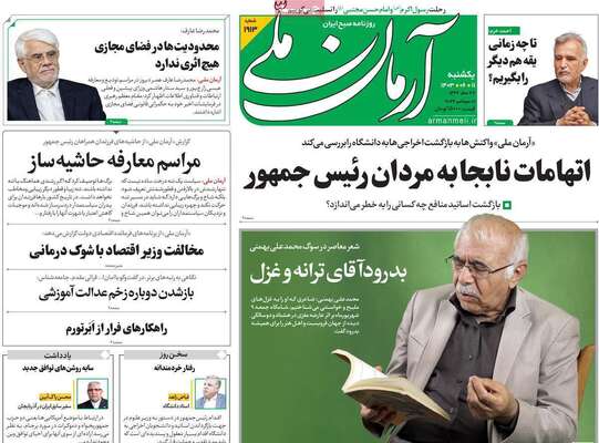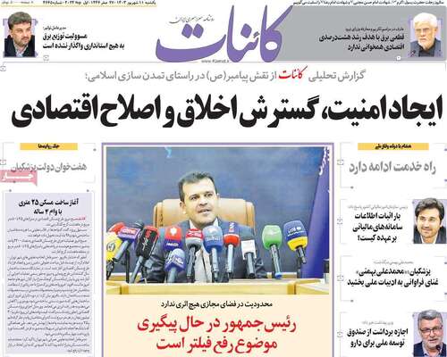 صفحه نخست روزنامههای یکشنبه ۱۱ شهریور ۱۴۰۳ را در ادامه مشاهده میکنید.