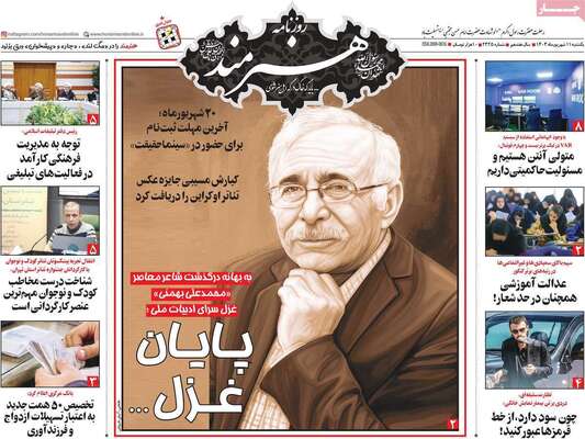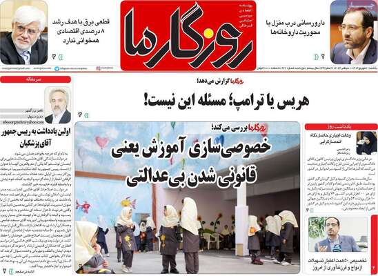 صفحه نخست روزنامههای یکشنبه ۱۱ شهریور ۱۴۰۳