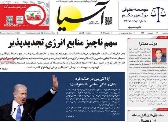 صفحه نخست روزنامههای سهشنبه ۱۳ شهریور ۱۴۰۳