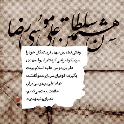 وقتی فضلبنسهل فرستادگان خود را سوی کوفه راهی کرد تا برای وليعهدی علیبنموسی(ع) بيعت بگيرند، کوفیان سر باز زدند و گفتند: «ما با علیبنموسی(ع) برای خلافت بيعت میکنيم، نه برای وليعهدی». اين نهايت شور و حرارت در خط مکتب امام علی(ع) بود؛ آنان نمیپذيرفتند که با امام رضا(ع) برای وليعهدی بيعت کنند، بلکه میخواستند با ايشان بهعنوان خليفه بيعت کنند. نمونههای ديگری نيز از رشد اين پايگاههای مردمی در دست است… [شهید محمدباقر صدر، کتاب امامان اهلبیت(ع)، صفحه ۶١٧-۶١٩]