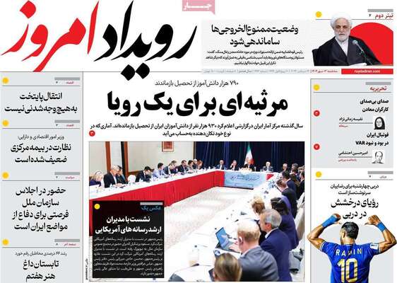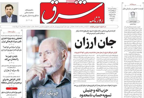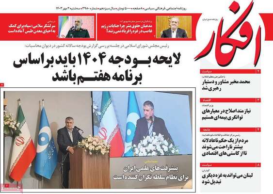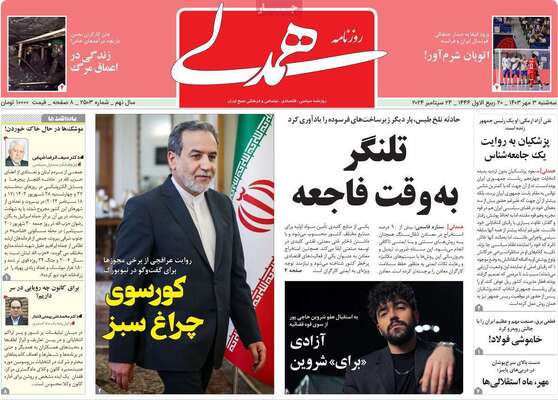 صفحه نخست روزنامههای سهشنبه ۳ مهر ۱۴۰۳ را در ادامه مشاهده میکنید.