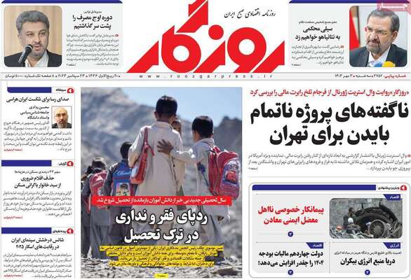 صفحه نخست روزنامههای سهشنبه ۳ مهر ۱۴۰۳