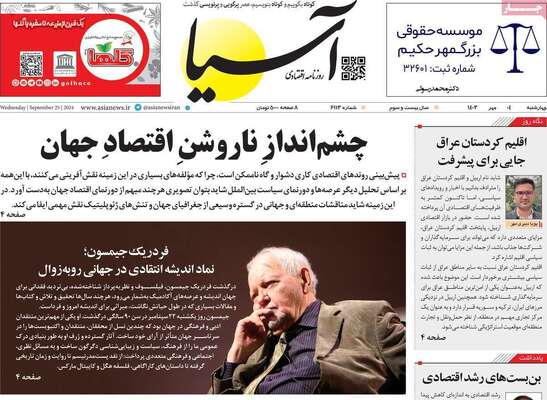 صفحه نخست روزنامههای چهارشنبه ۴ مهر ۱۴۰۳