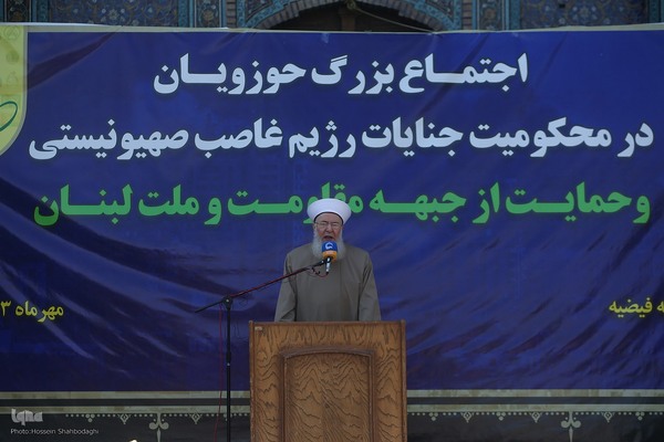 اجتماع حوزویان در حمایت از جبهه مقاومت و ملت لبنان، صبح امروز چهارشنبه ۴ مهرماه در مدرسه علمیه فیضیه قم برگزار شد. در این تجمع آیتالله اراکی، شیخ عیسی قاسم و شیخ غازی حنینه سخنرانی کردند.