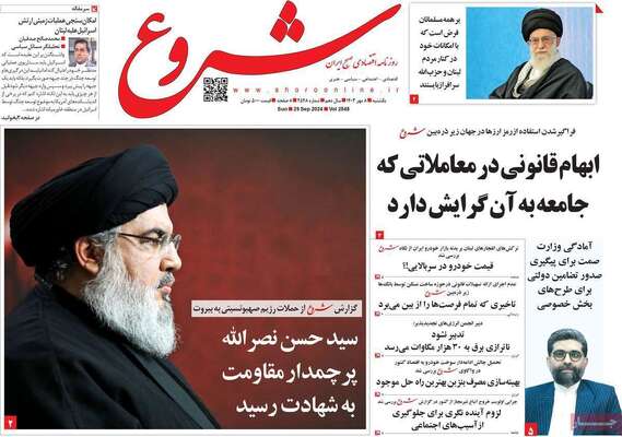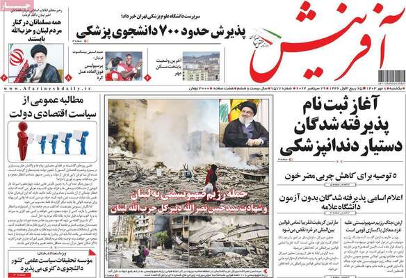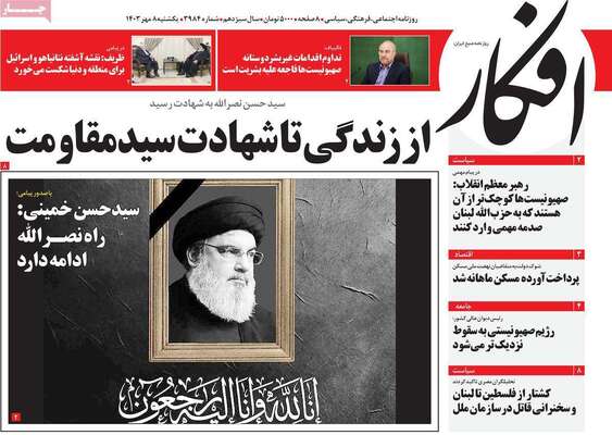 صفحه نخست روزنامههای یکشنبه ۸ مهر ۱۴۰۳