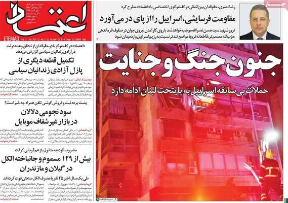 صفحه نخست روزنامههای سهشنبه ۱۰ مهر ۱۴۰۳