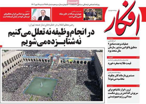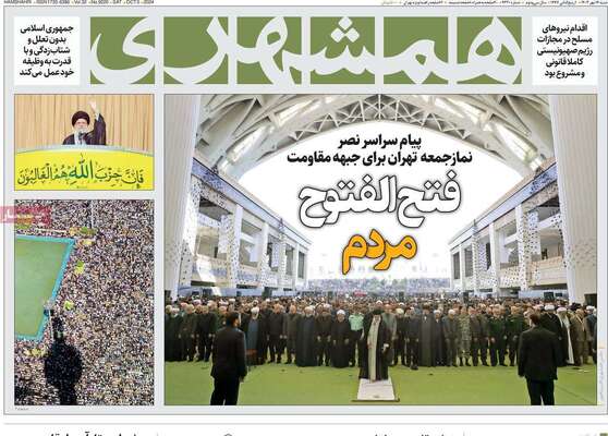 صفحه نخست روزنامههای شنبه ۱۴ مهر ۱۴۰۳