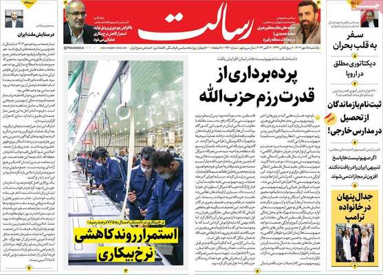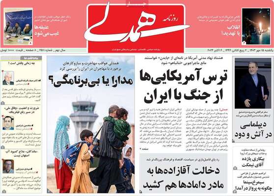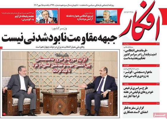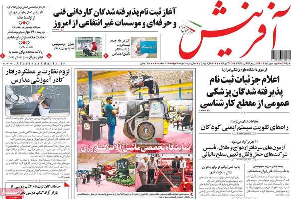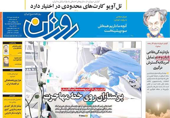 صفحه نخست روزنامههای یکشنبه ۱۵ مهر ۱۴۰۳