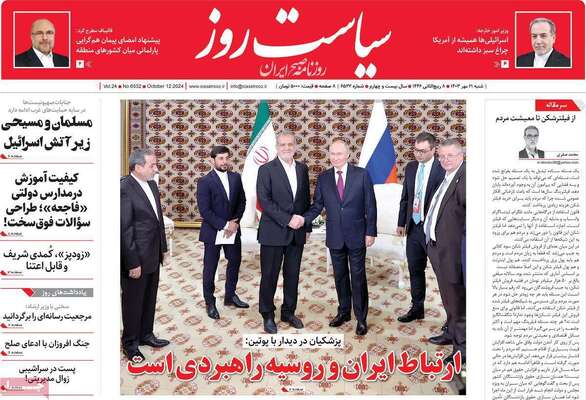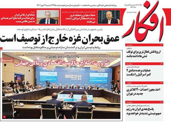 صفحه نخست روزنامههای شنبه ۲۱ مهر ۱۴۰۳
