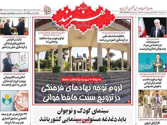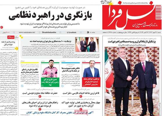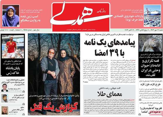 صفحه نخست روزنامههای شنبه ۲۱ مهر ۱۴۰۳ را در ادامه مشاهده میکنید.