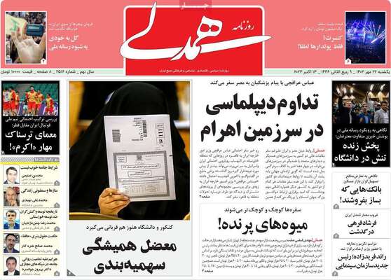 صفحه نخست روزنامههای یکشنبه ۲۲ مهر ۱۴۰۳