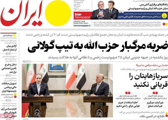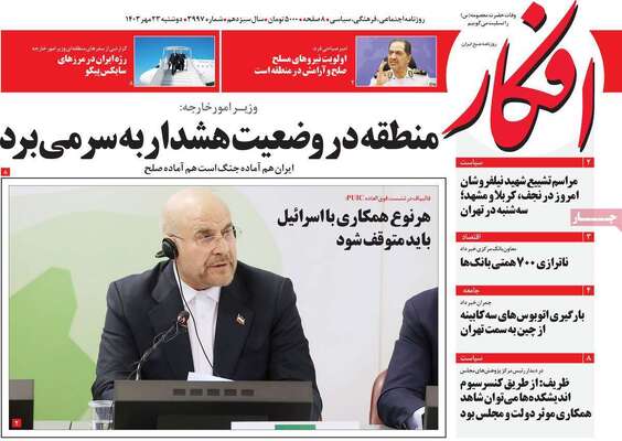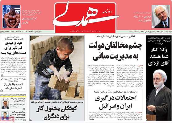 صفحه نخست روزنامههای دوشنبه ۲۳ مهر ۱۴۰۳