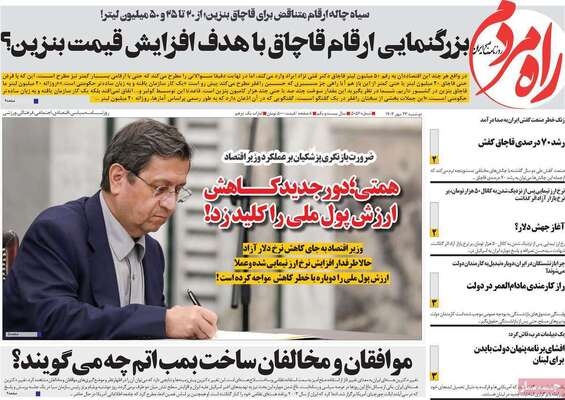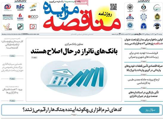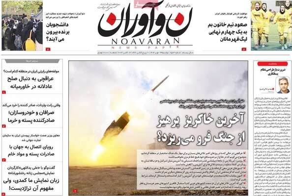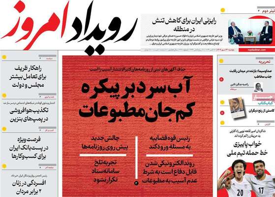 صفحه نخست روزنامههای دوشنبه ۲۳ مهر ۱۴۰۳ را که برخی به سفر وزیر امور خارجه به عراق، سخنرانی رئیس مجلس شورای اسلامی در نشست PUIC، همدلی طلایی، وضعیت اصلاح بانکها و رویدادهای مهم ورزشی پرداختهاند؛ در ادامه مشاهده میکنید.