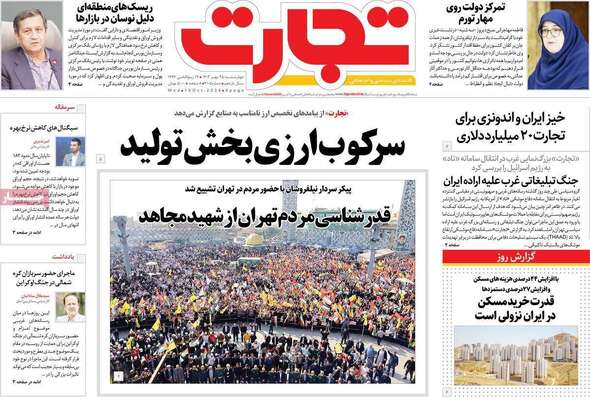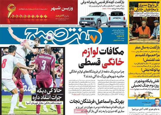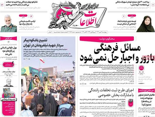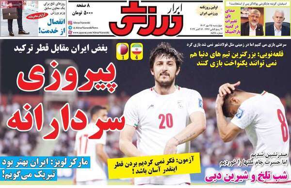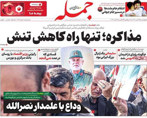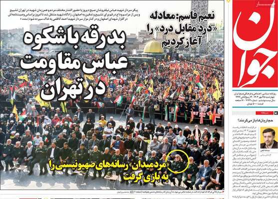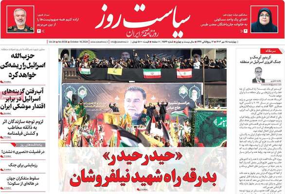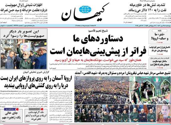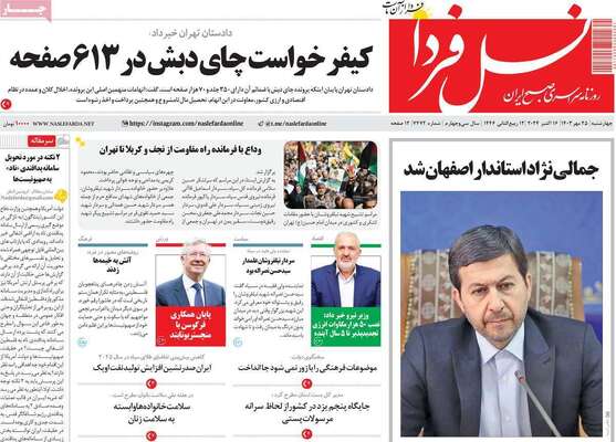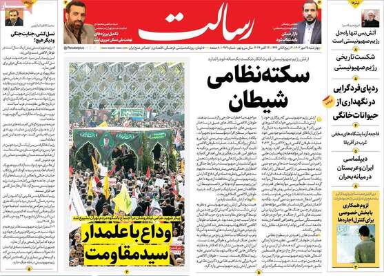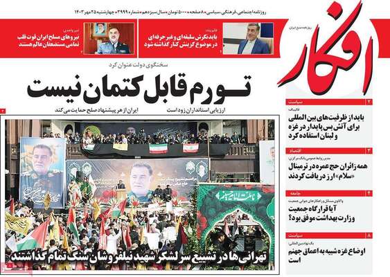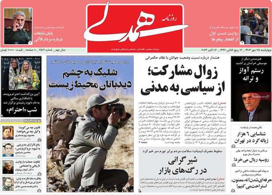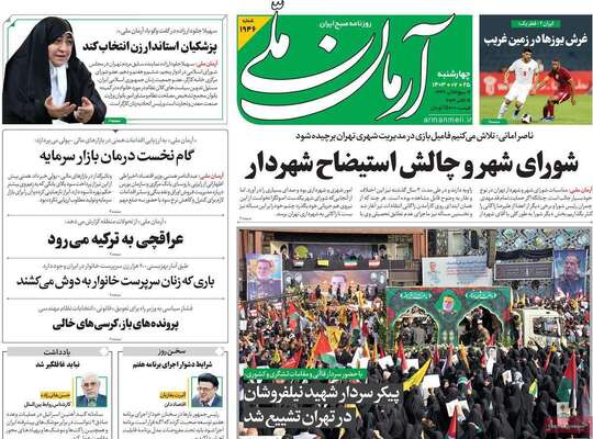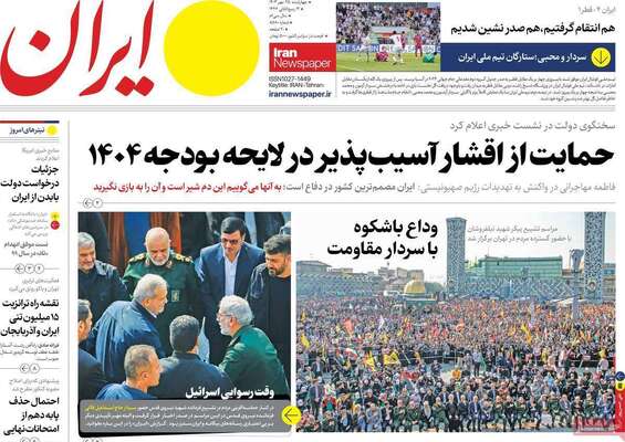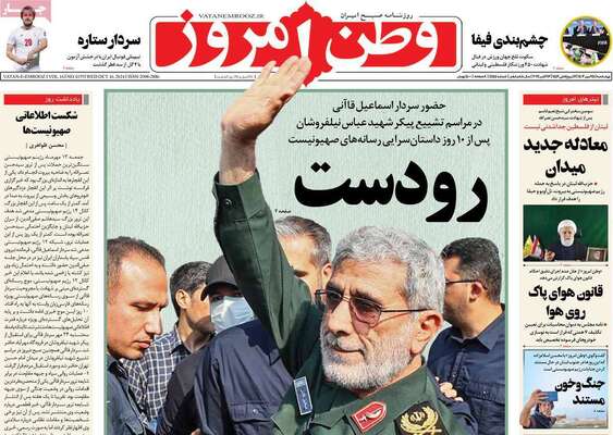صفحه نخست روزنامههای چهارشنبه ۲۵ مهر ۱۴۰۳ را که به حضور سردار قاآنی در مراسم تشییع پیکر شهید نیلفروشان، تشریح بودجه ۱۴۰۴ و پیروزی تیم فوتبال ایران مقابل قطر پرداختهاند؛ در ادامه مشاهده میکنید.
