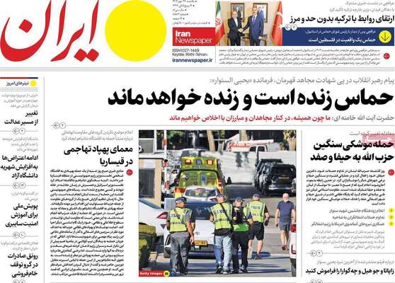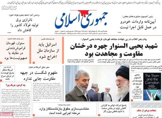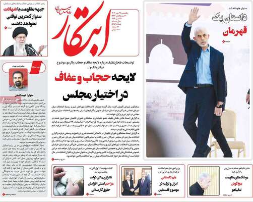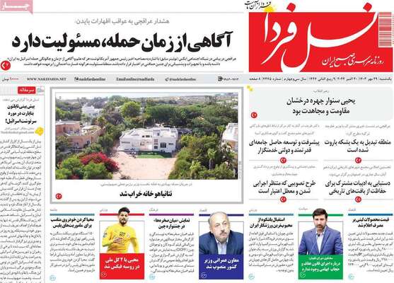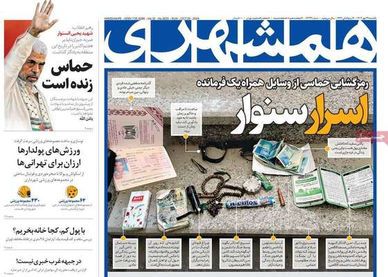 صفحه نخست روزنامههای یکشنبه ۲۹ مهر ۱۴۰۳ را که به واکنشها به شهادت یحیی السنوار، ترور نتانیاهو، نابسامانی بازار بنزین و مهمترین رویدادهای ورزشی پرداختهاند؛ در ادامه مشاهده میکنید.
