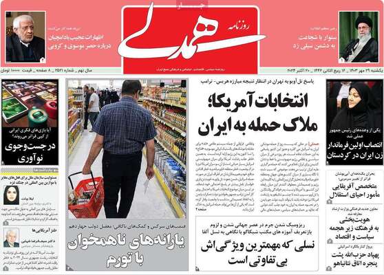 صفحه نخست روزنامههای یکشنبه ۲۹ مهر ۱۴۰۳