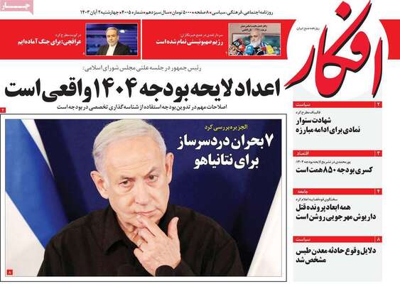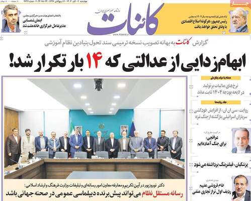 صفحه نخست روزنامههای چهارشنبه ۲ آبان ۱۴۰۳