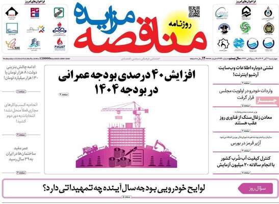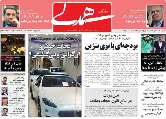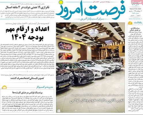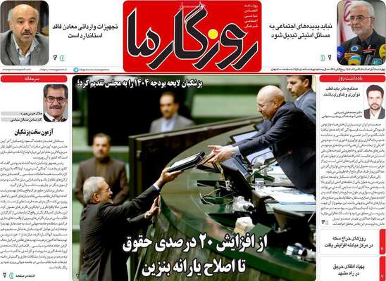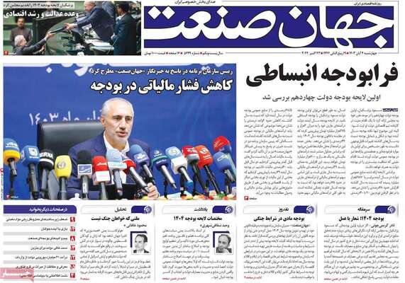 صفحه نخست روزنامههای چهارشنبه ۲ آبان ۱۴۰۳ را که به تقدیم لایحه بودجه، افزایش قیمت دلار، نابسامانی ایرلاینها و مهمترین رویدادهای ورزشی پرداختهاند؛ در ادامه مشاهده میکنید.