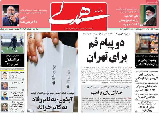 صفحه نخست روزنامههای شنبه ۱۲ آبان ۱۴۰۳