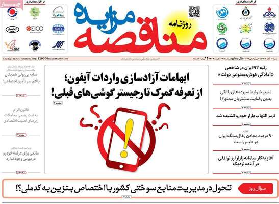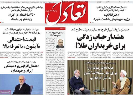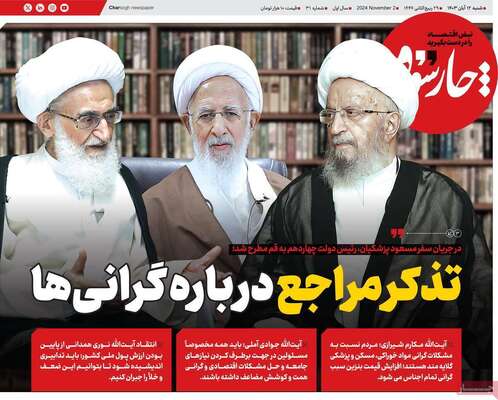 صفحه نخست روزنامههای شنبه ۱۲ آبان ۱۴۰۳ را که به تذکر مراجع عظام به گرانی، تقویت ارز نیمایی و مهمترین رویدادهای ورزشی پرداختهاند؛ در ادامه مشاهده میکنید.