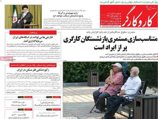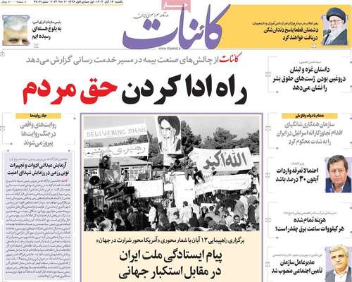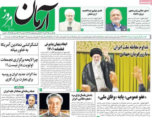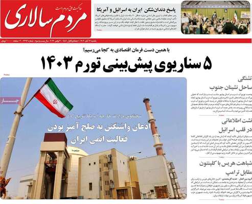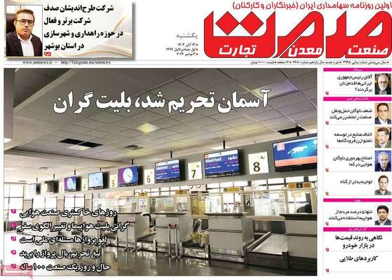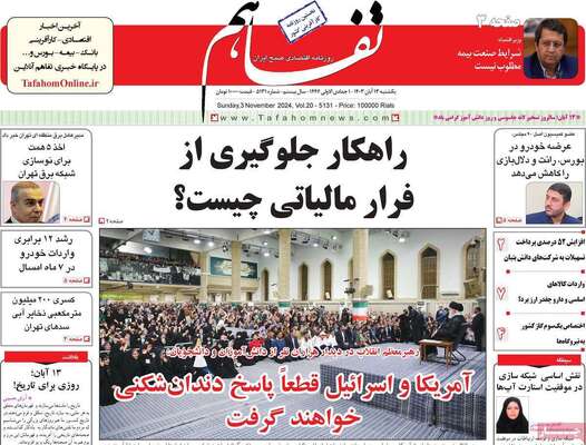 صفحه نخست روزنامههای یکشنبه ۱۳ آبان ۱۴۰۳