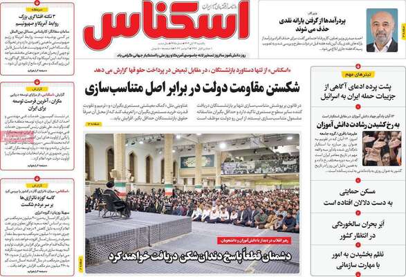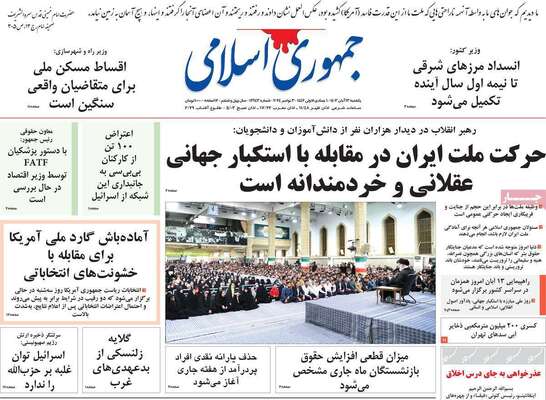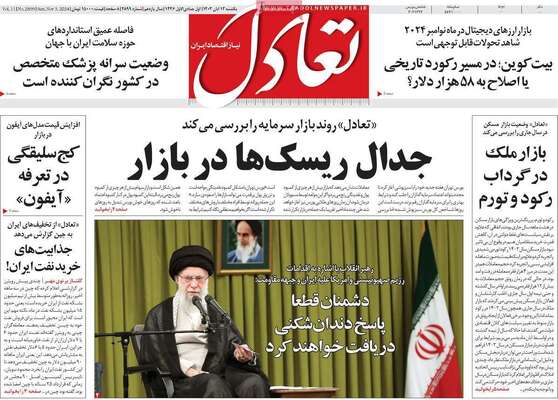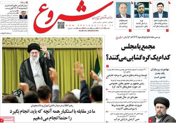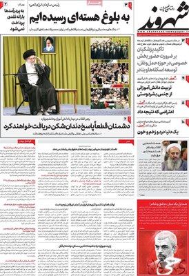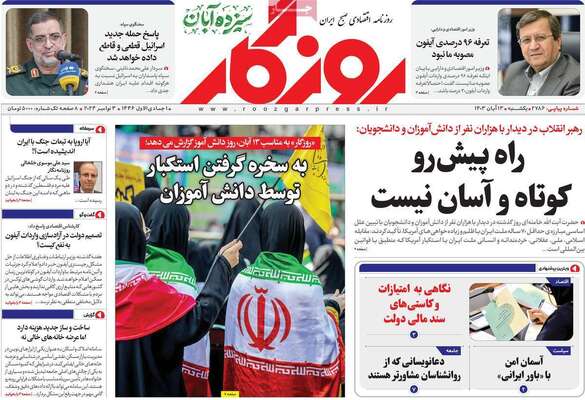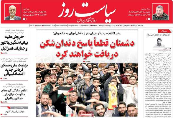 صفحه نخست روزنامههای یکشنبه ۱۳ آبان ۱۴۰۳ را که به دیدار هزاران دانش آموز با رهبر معظم انقلاب، پاسخ دندانشکن به آمریکا، رنگ سبز بورس و مهمترین رویدادهای ورزشی پرداختهاند؛ در ادامه مشاهده میکنید.