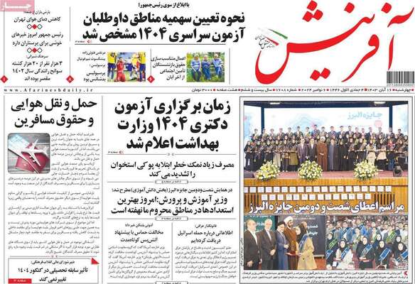 صفحه نخست روزنامههای چهارشنبه ۱۶ آبان ۱۴۰۳