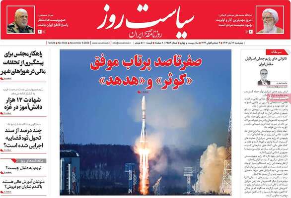 صفحه نخست روزنامههای چهارشنبه ۱۶ آبان ۱۴۰۳ را که به پرتاب موفقیتآمیز ماهوارههای ایرانی، نتیجه انتخابات آمریکا و مهمترین رویدادهای ورزشی پرداختهاند؛ در ادامه مشاهده میکنید.