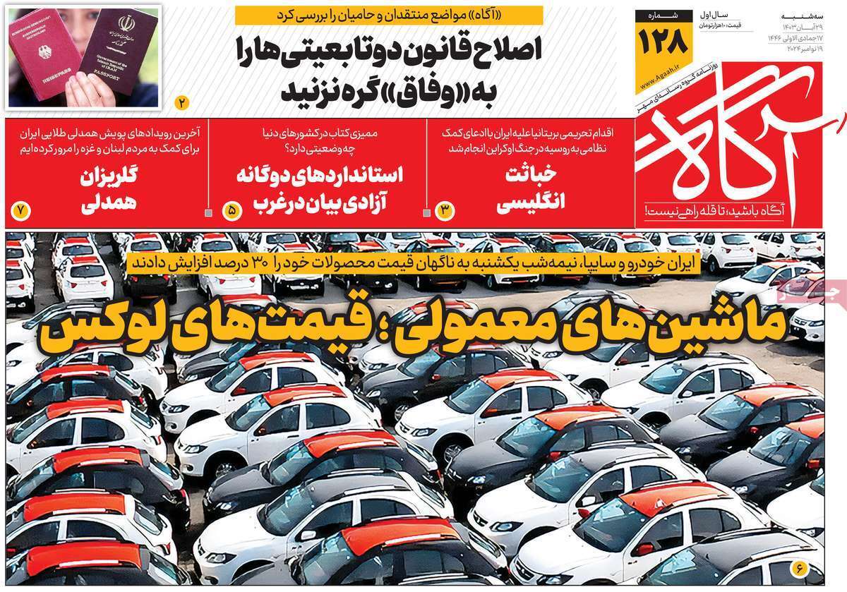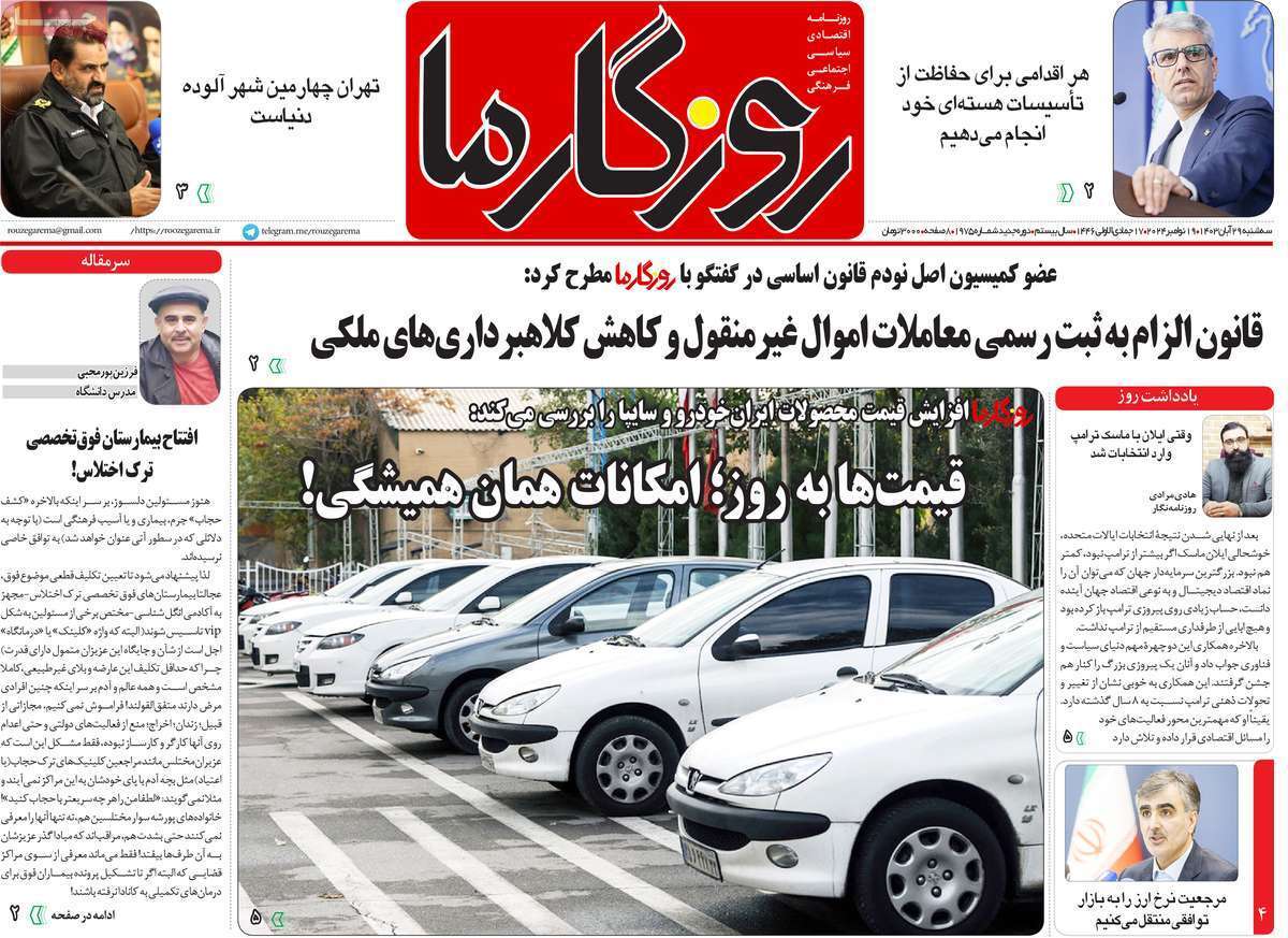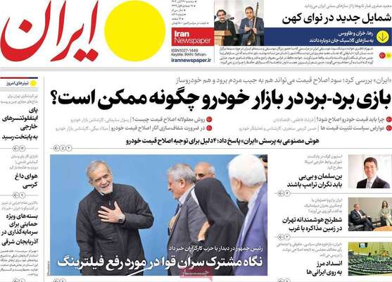 صفحه نخست روزنامههای سهشنبه ۲۹ آبان ۱۴۰۳ را که به وفاق قوا برای رفع فیلترینگ، گرانی خودروهای معمولی، شکستهای پی در پی صهیونیست از حزبالله و مهمترین رویدادهای ورزشی پرداختهاند؛ در ادامه مشاهده میکنید.