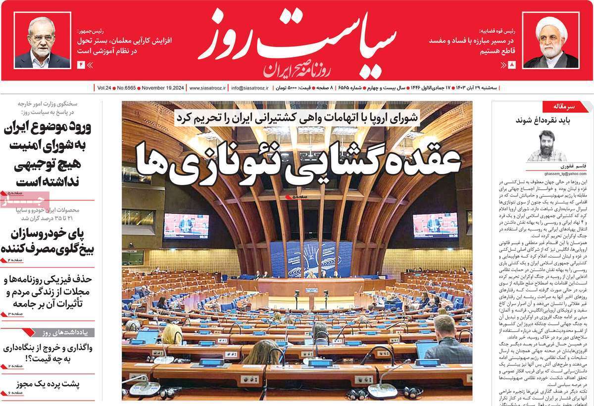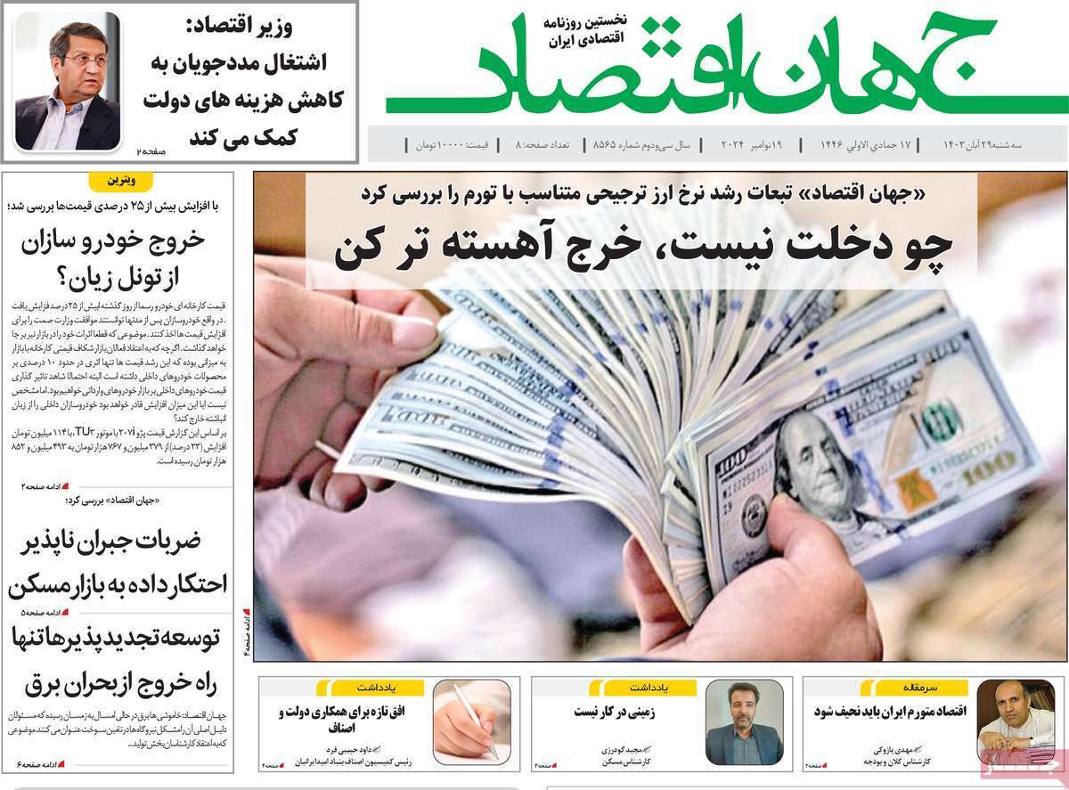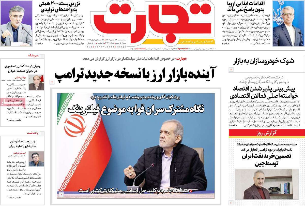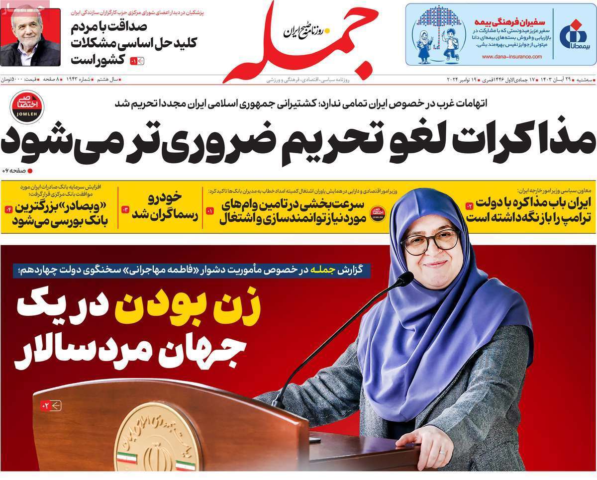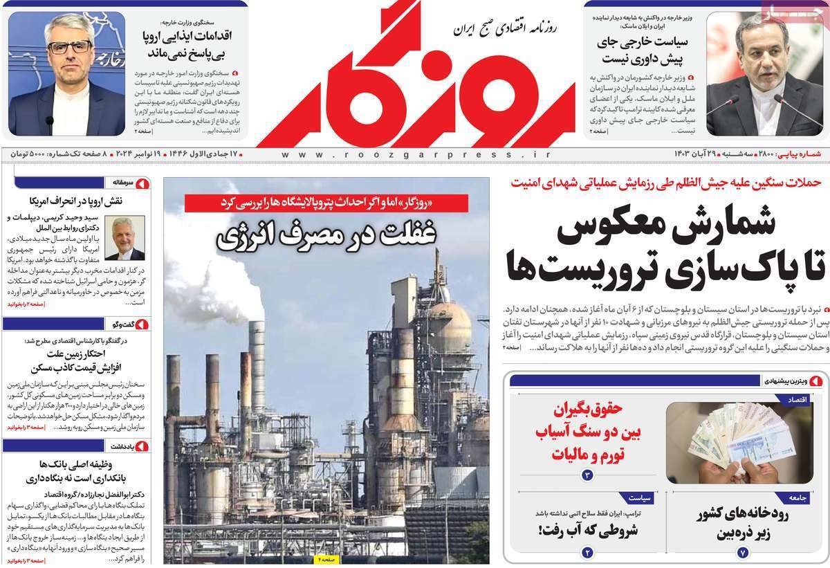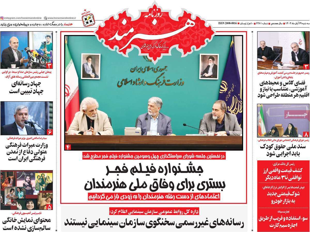 صفحه نخست روزنامههای سهشنبه ۲۹ آبان ۱۴۰۳