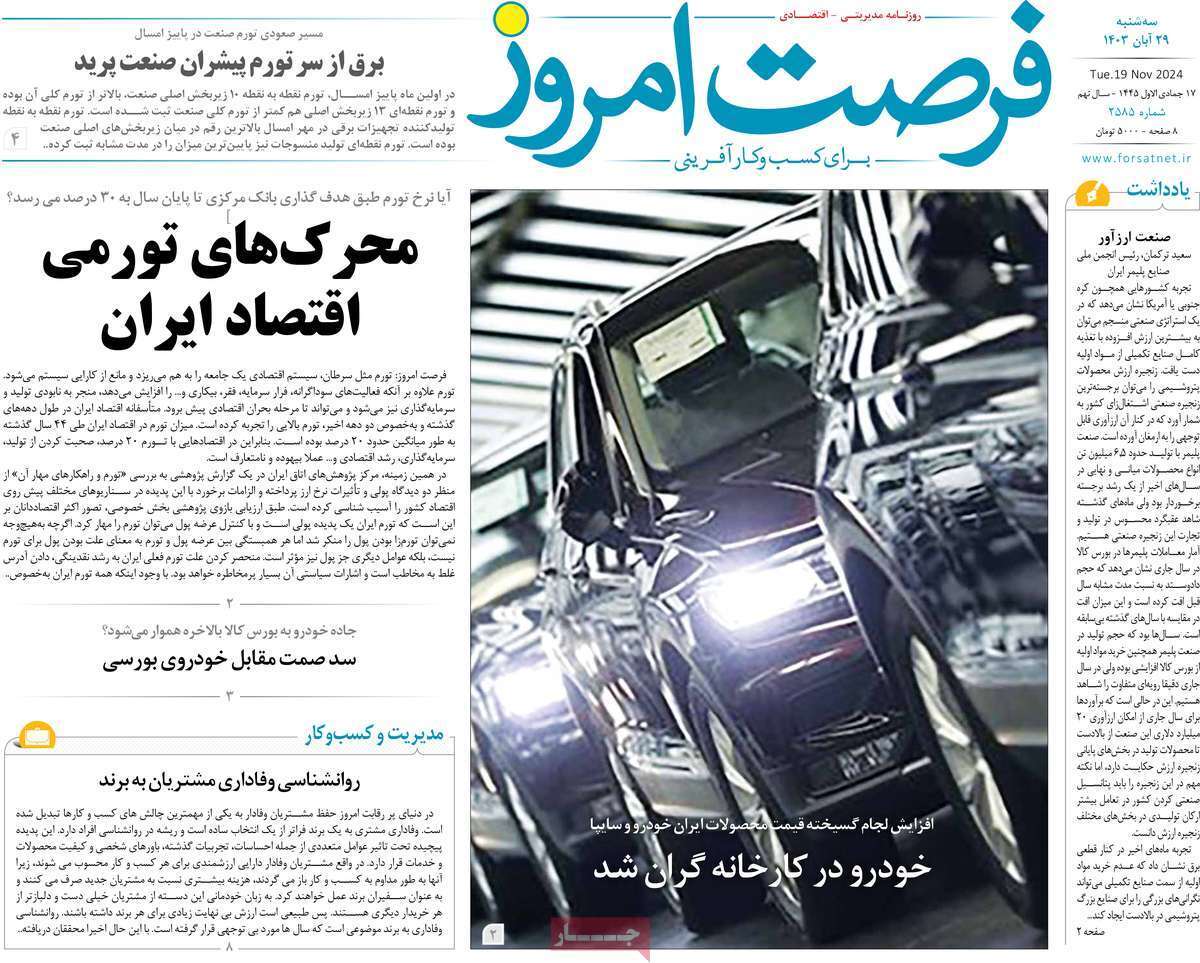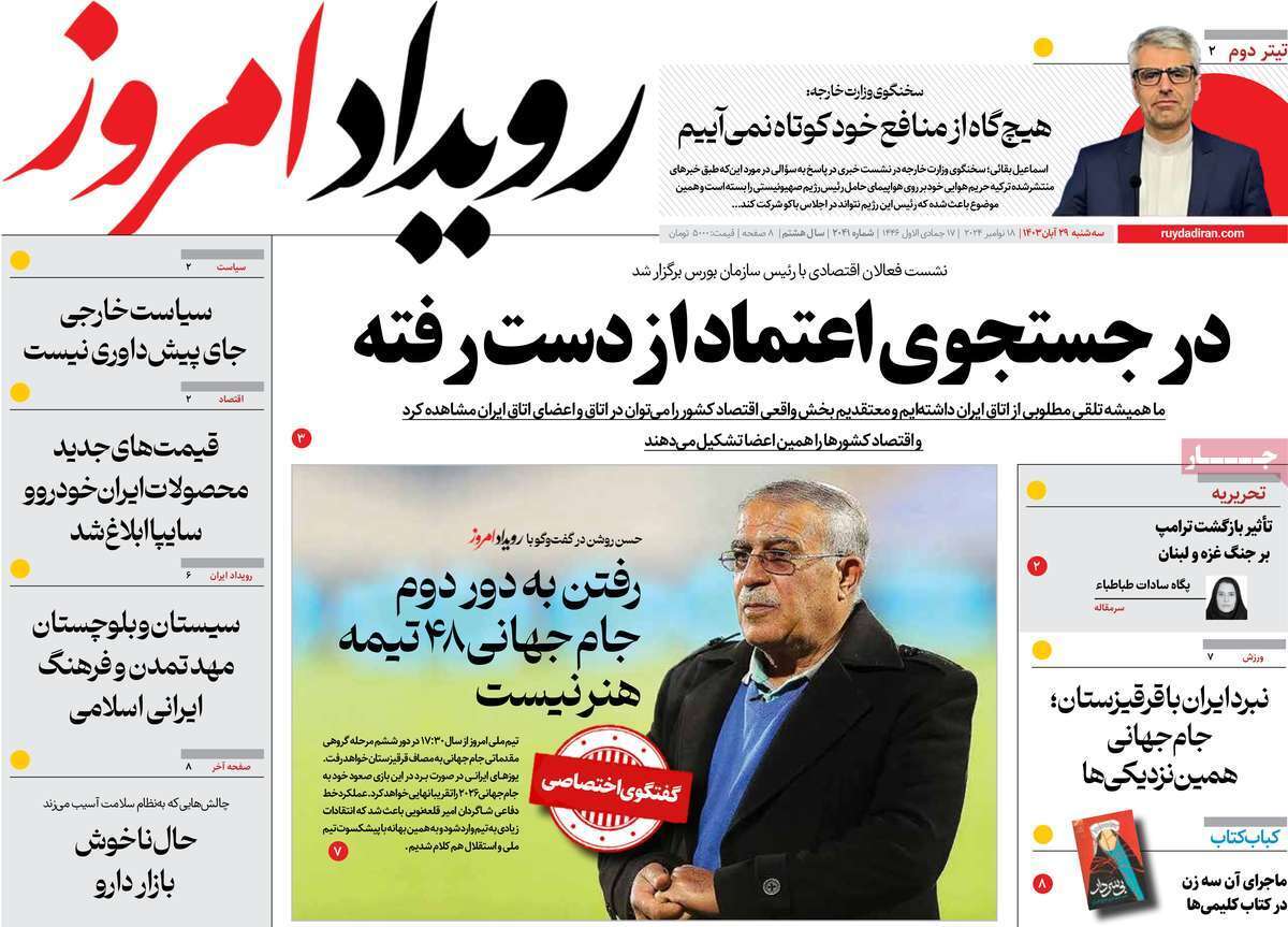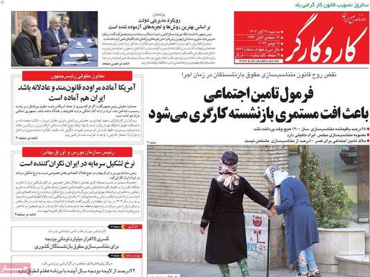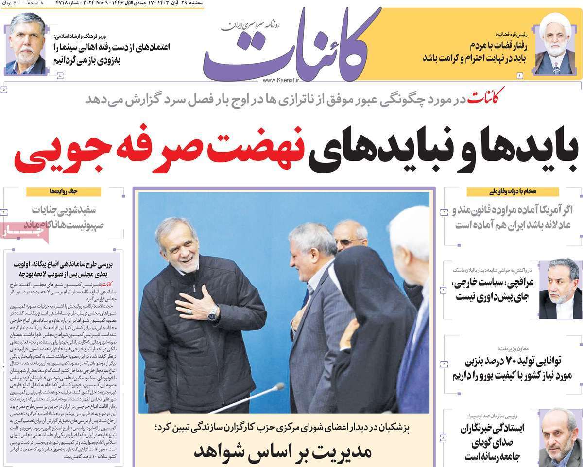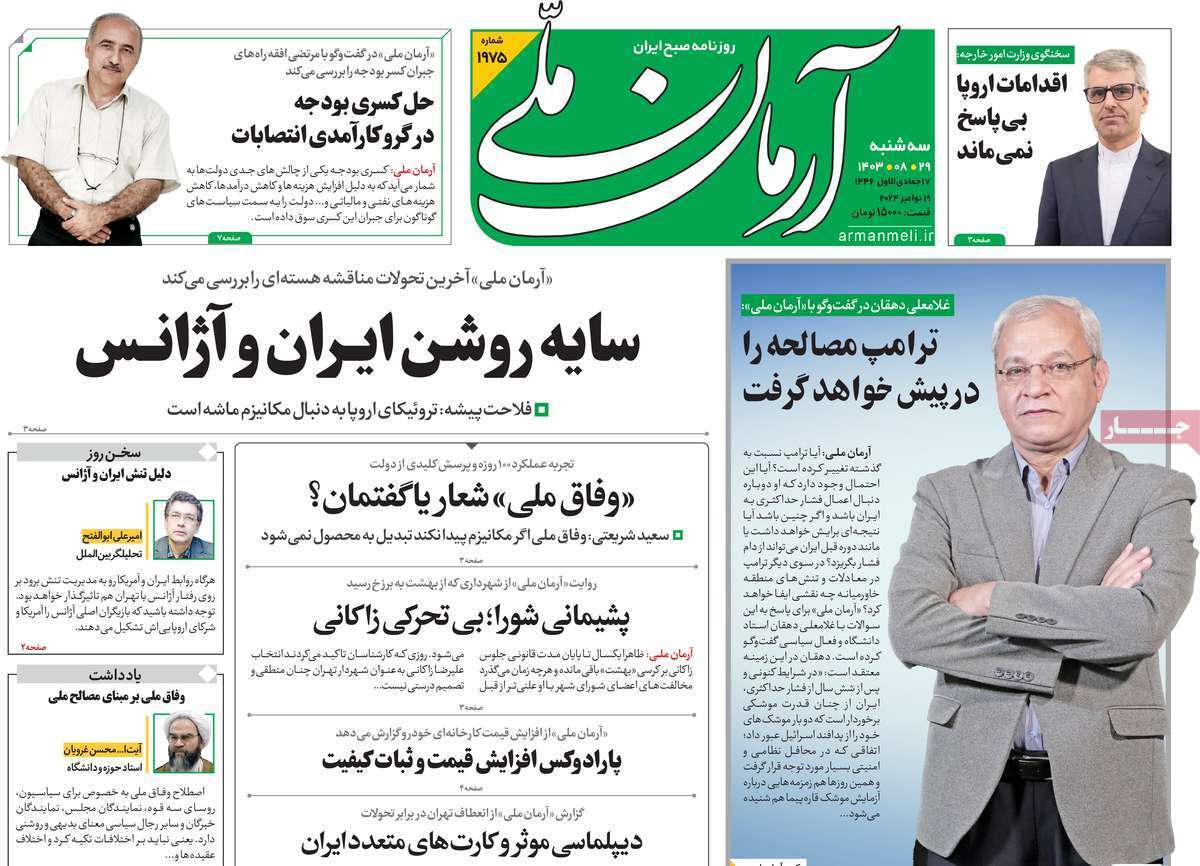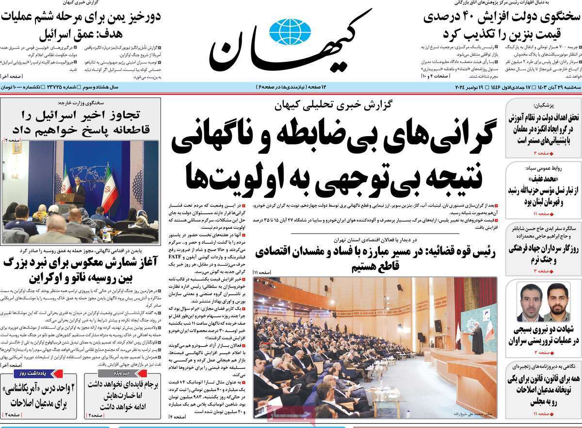صفحه نخست روزنامههای سهشنبه ۲۹ آبان ۱۴۰۳