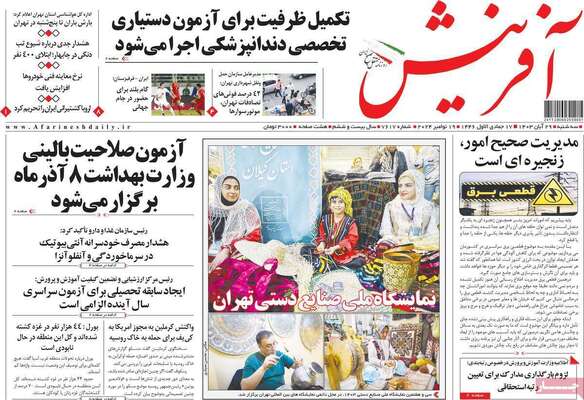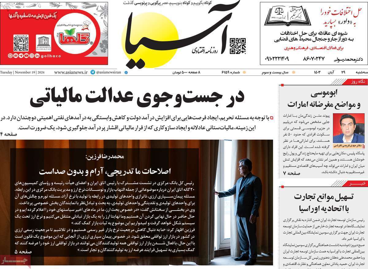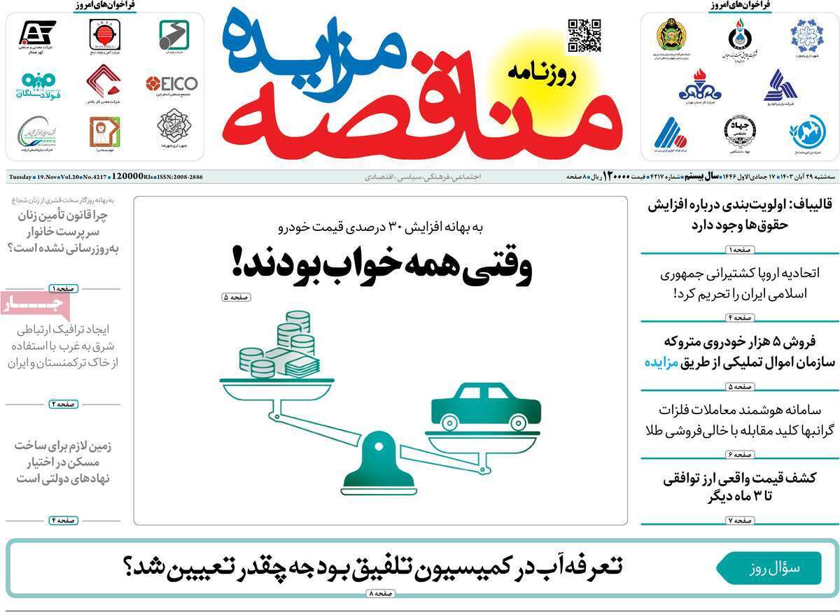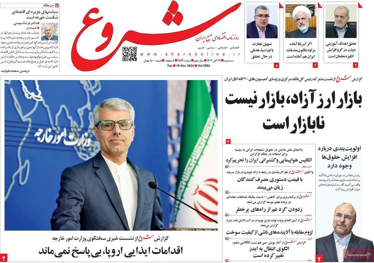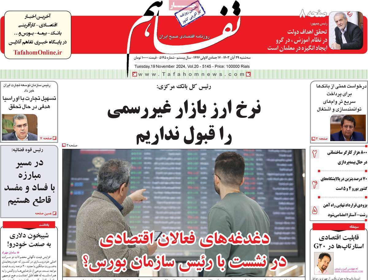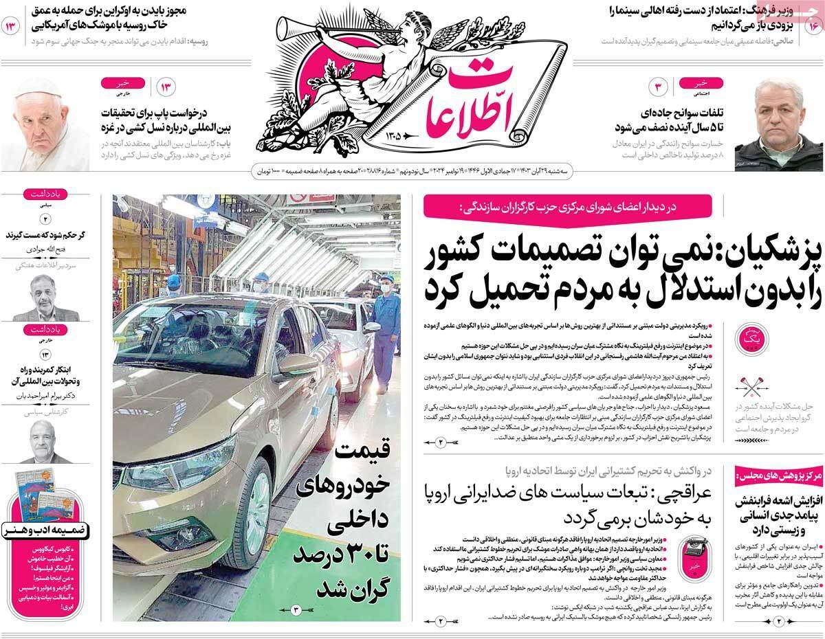 صفحه نخست روزنامههای سهشنبه ۲۹ آبان ۱۴۰۳