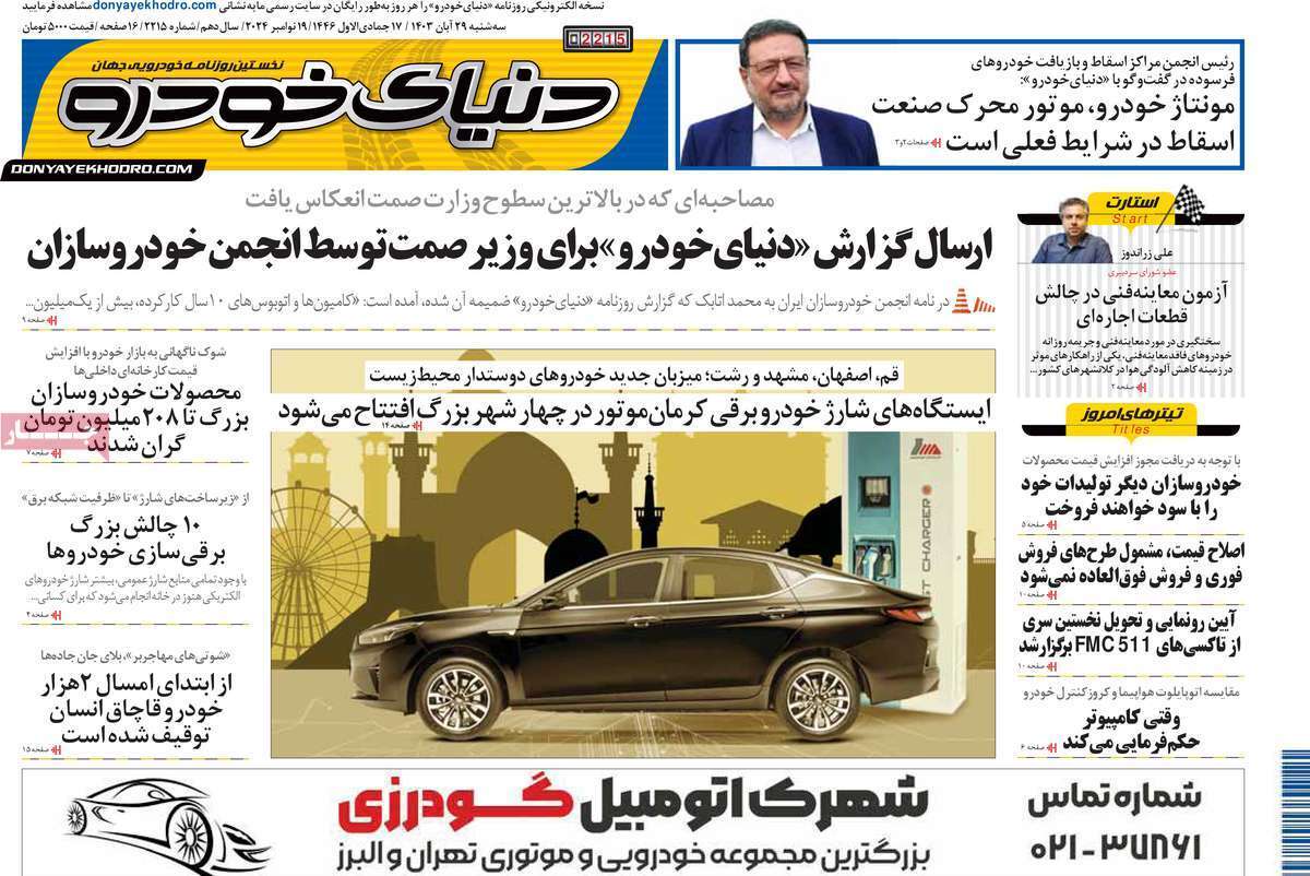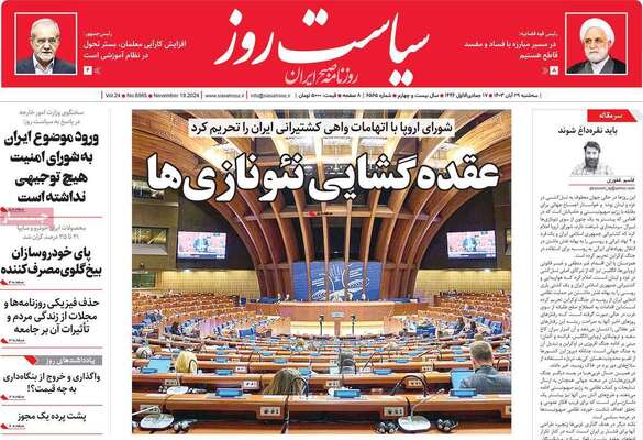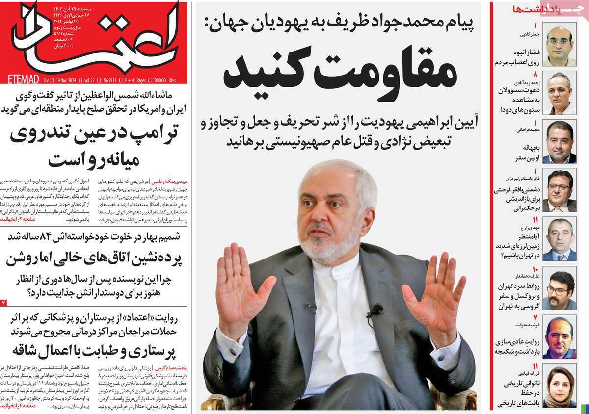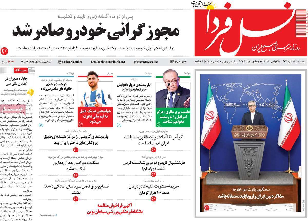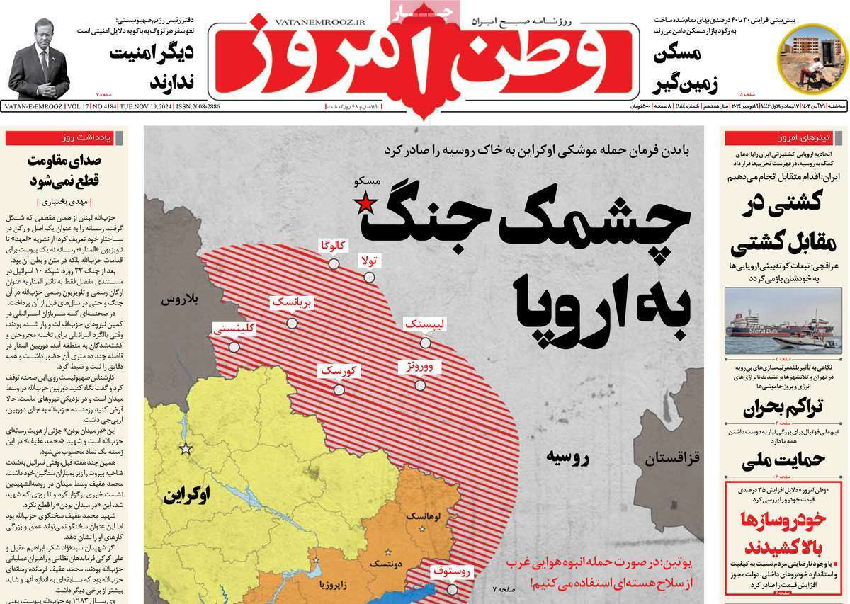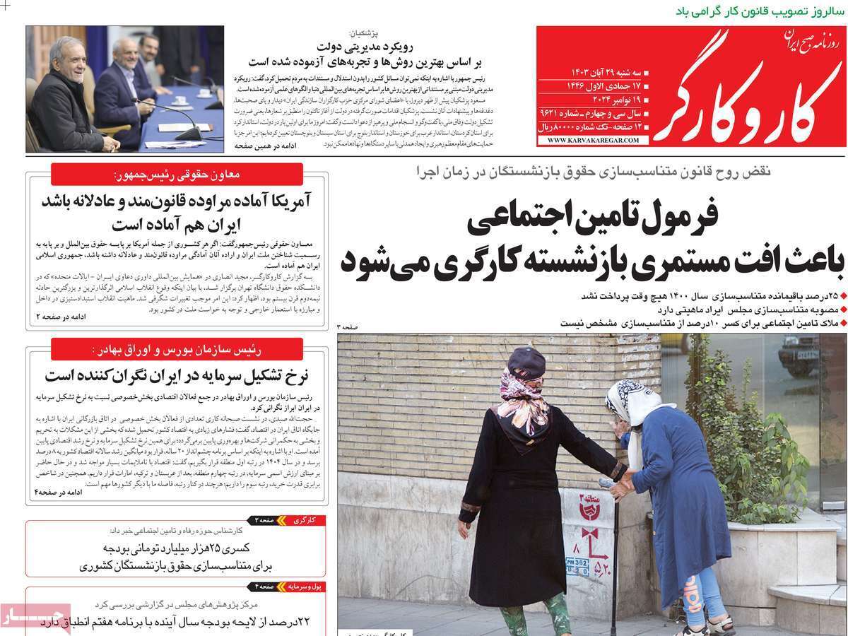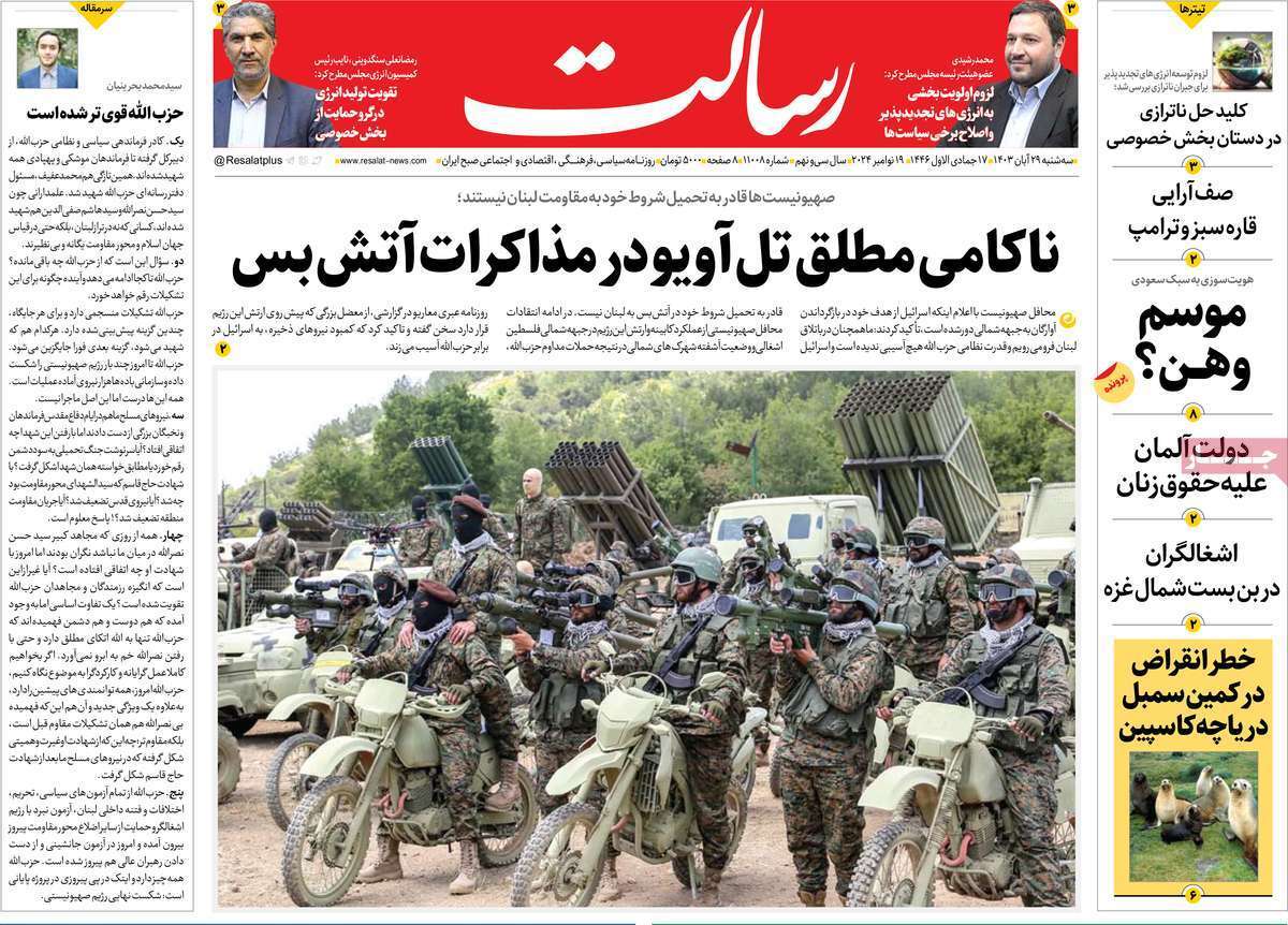صفحه نخست روزنامههای سهشنبه ۲۹ آبان ۱۴۰۳