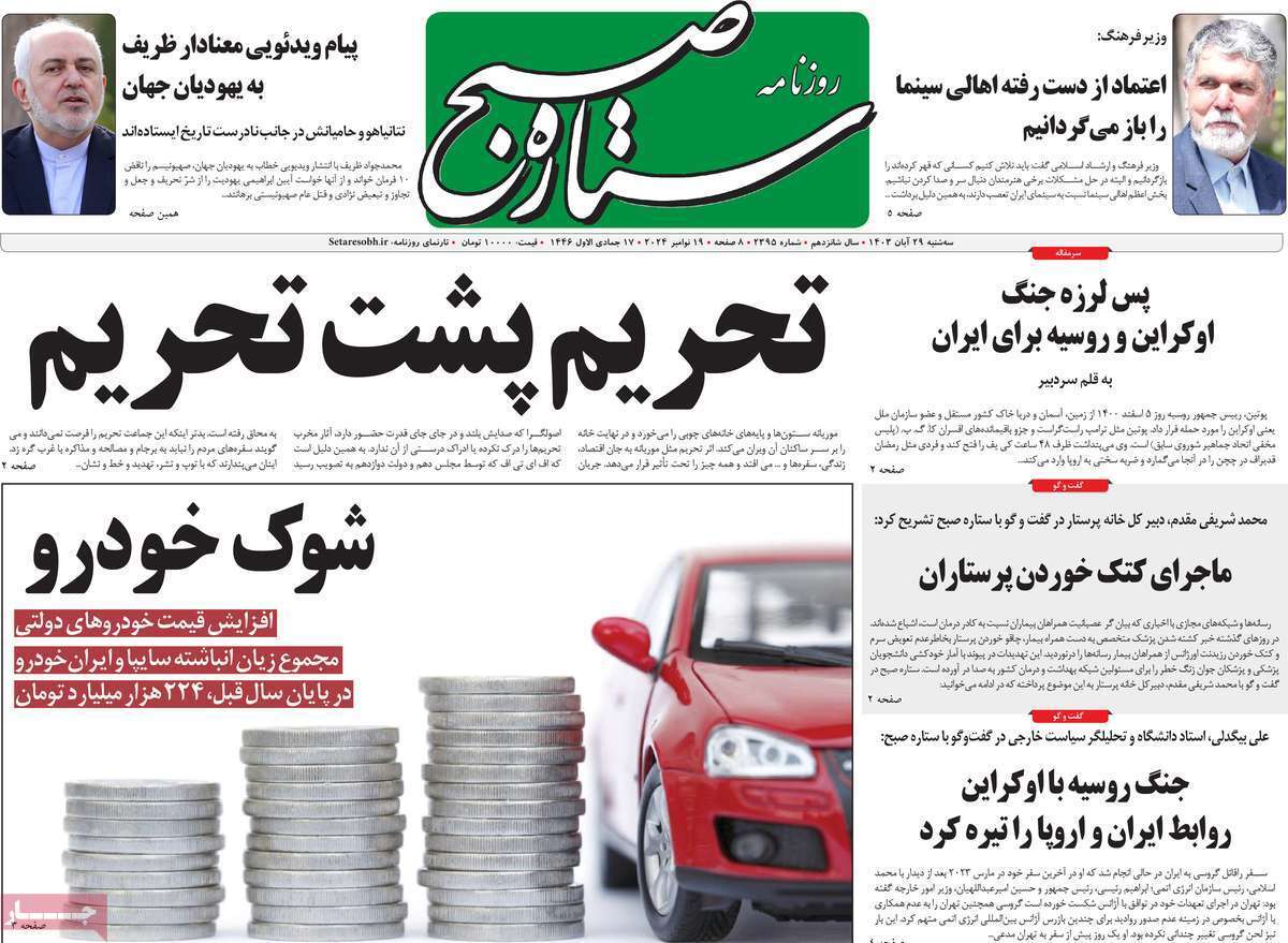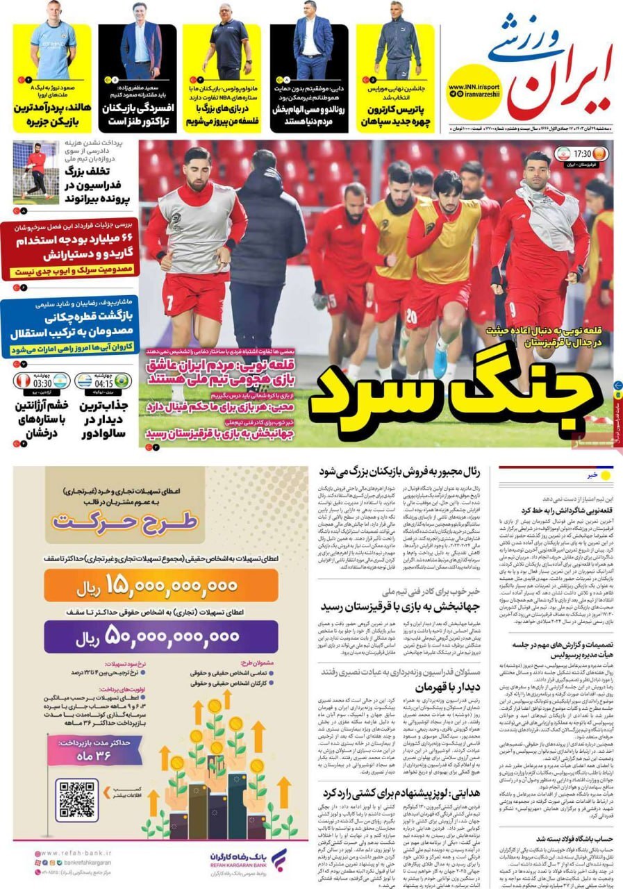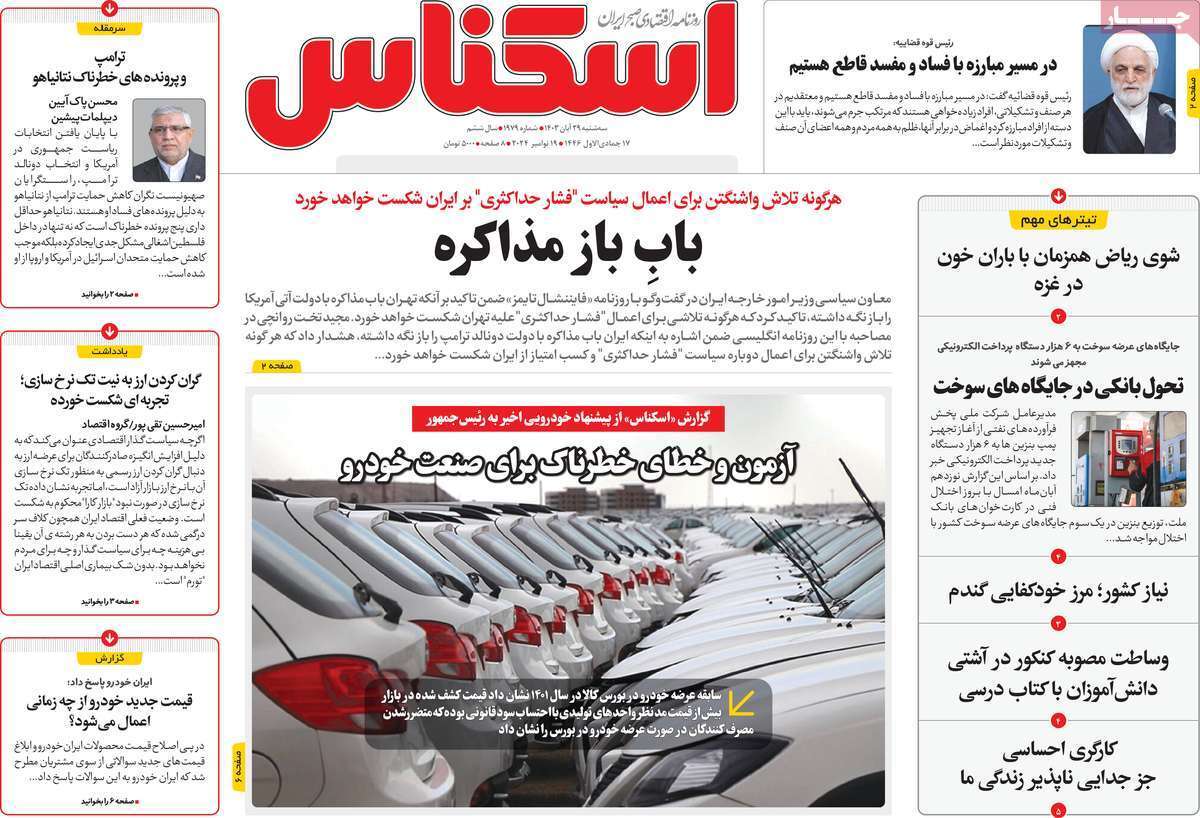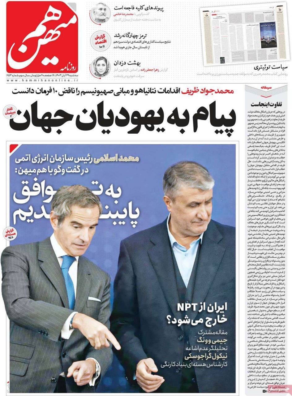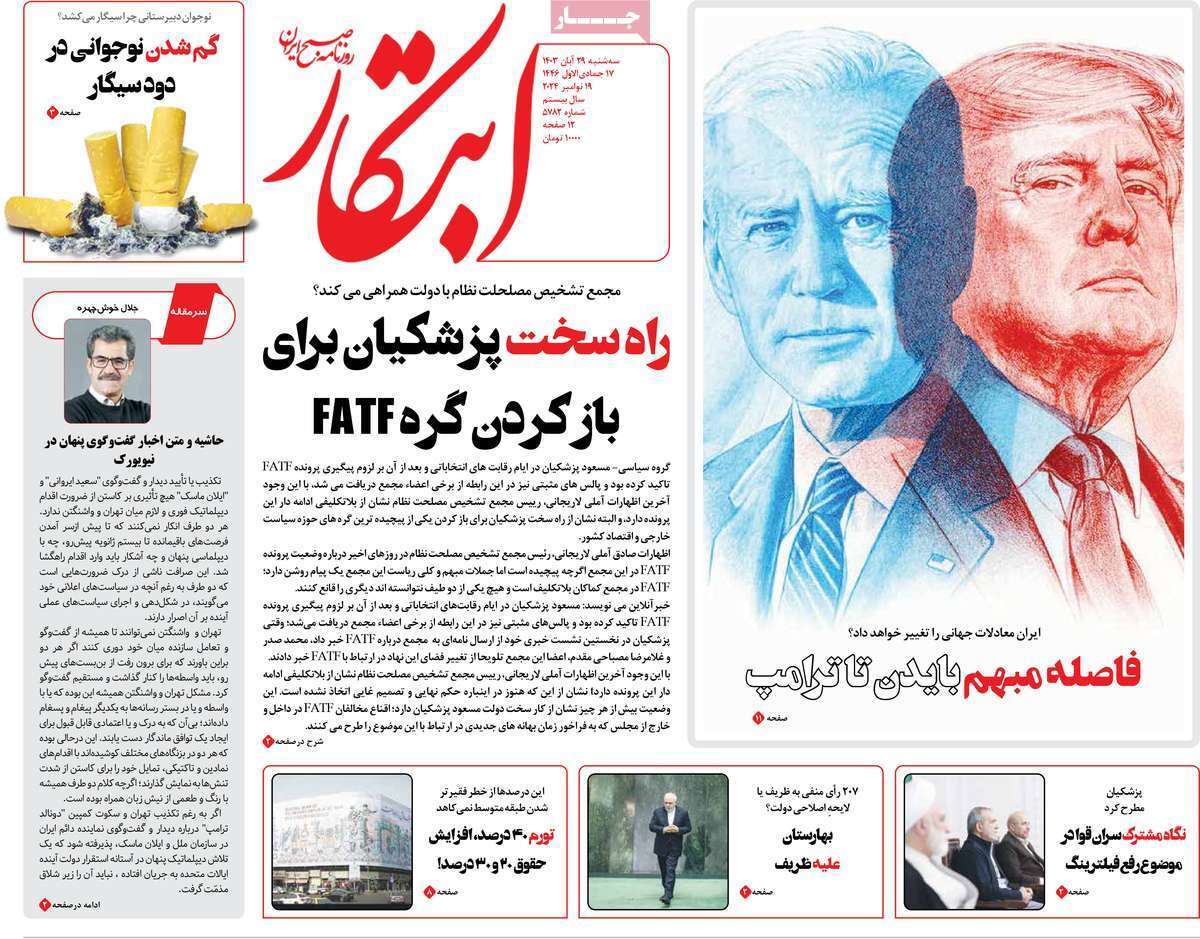 صفحه نخست روزنامههای سهشنبه ۲۹ آبان ۱۴۰۳