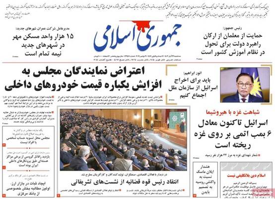 صفحه اول جراید کشور