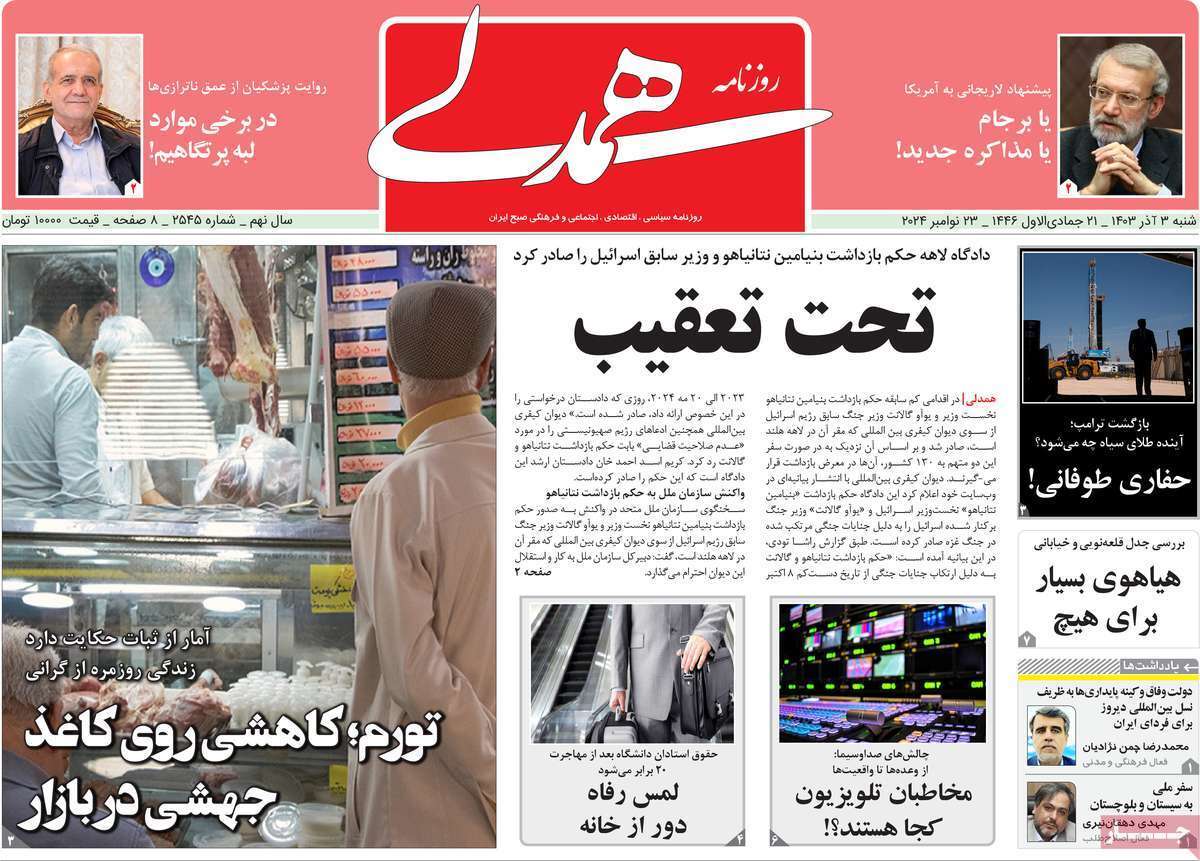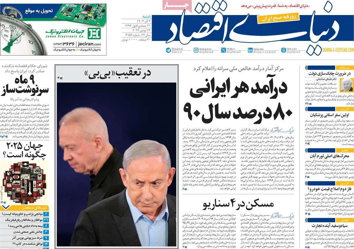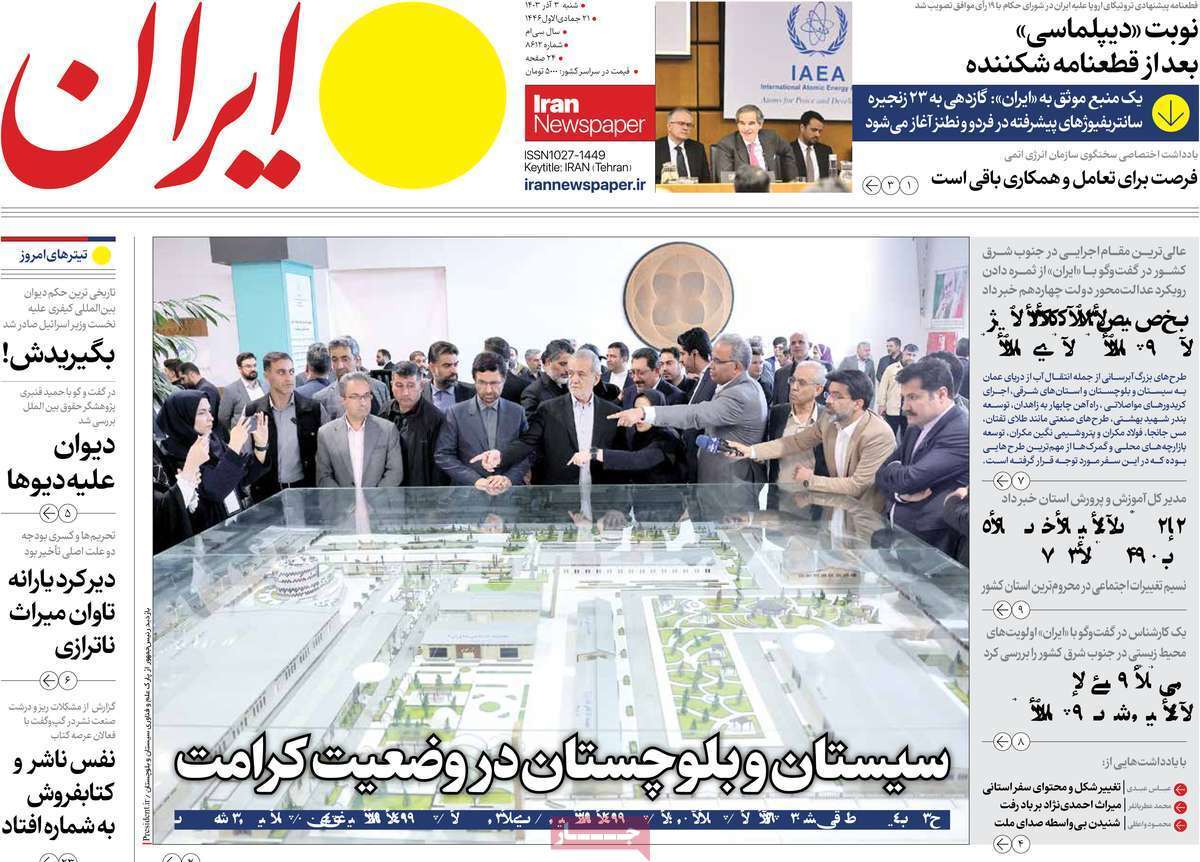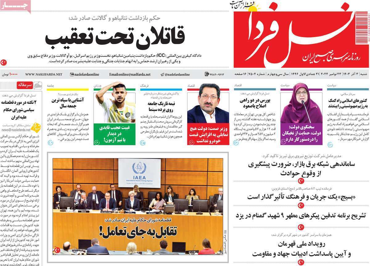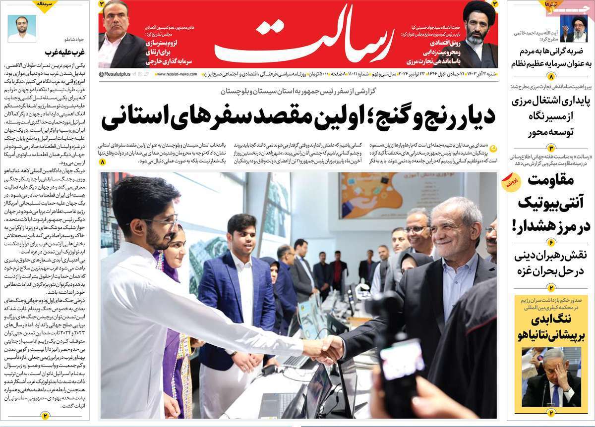 صفحه نخست روزنامههای شنبه ۳ آذر ۱۴۰۳ را که به جنایتکاران تحت تعقیب رژیم صهیونیستی، سیستان و بلوچستان در مدار تکریم و مهمترین رویدادهای ورزشی پرداختهاند؛ در ادامه مشاهده میکنید.