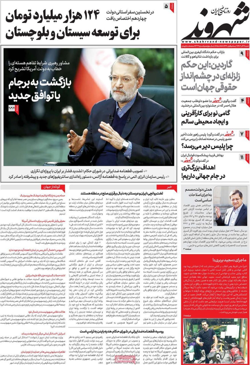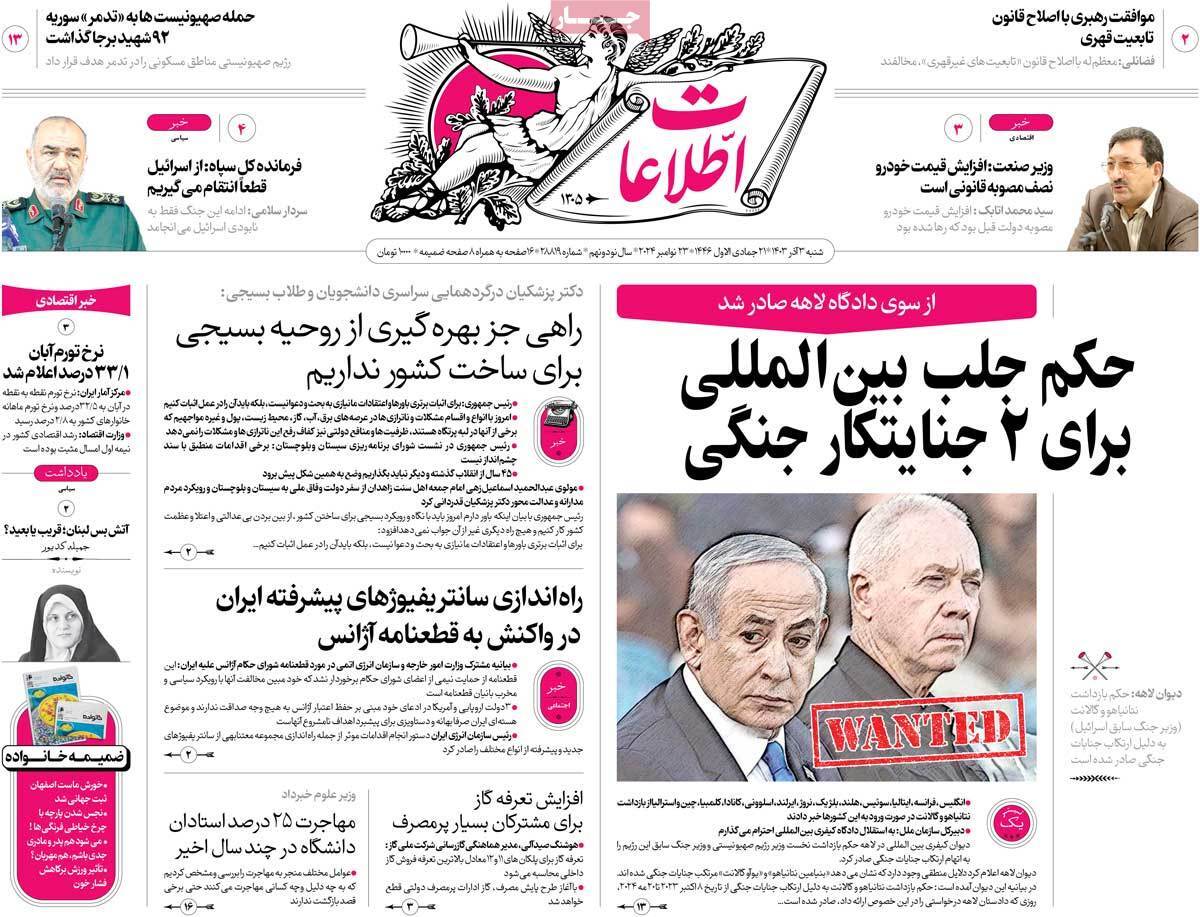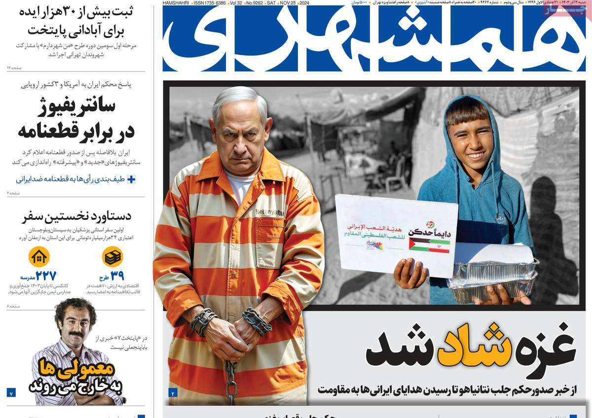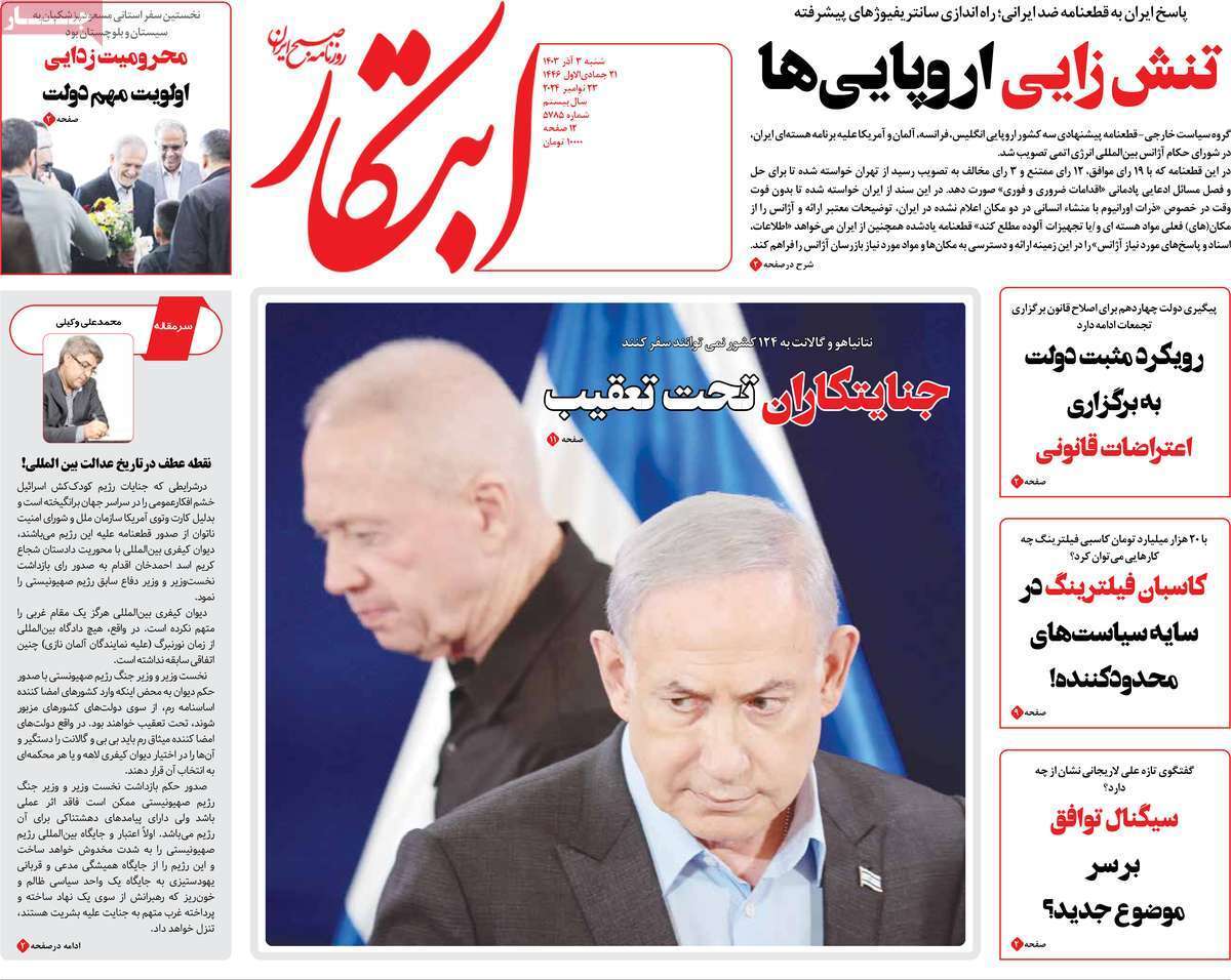 صفحه نخست روزنامههای شنبه ۳ آذر ۱۴۰۳ را که به جنایتکاران تحت تعقیب رژیم صهیونیستی، سیستان و بلوچستان در مدار تکریم و مهمترین رویدادهای ورزشی پرداختهاند؛ در ادامه مشاهده میکنید.