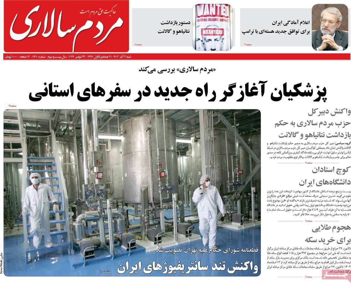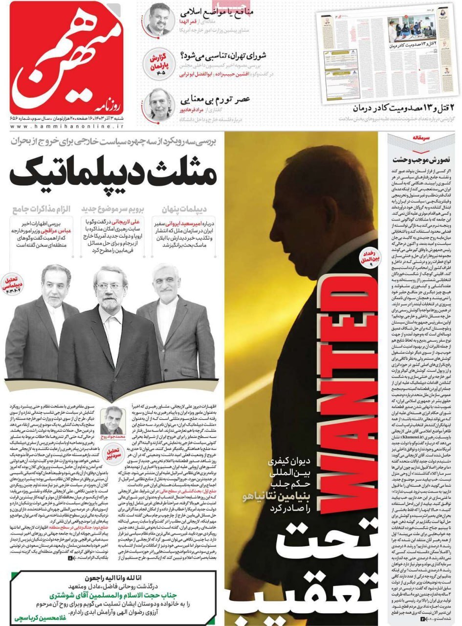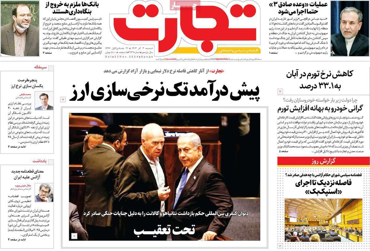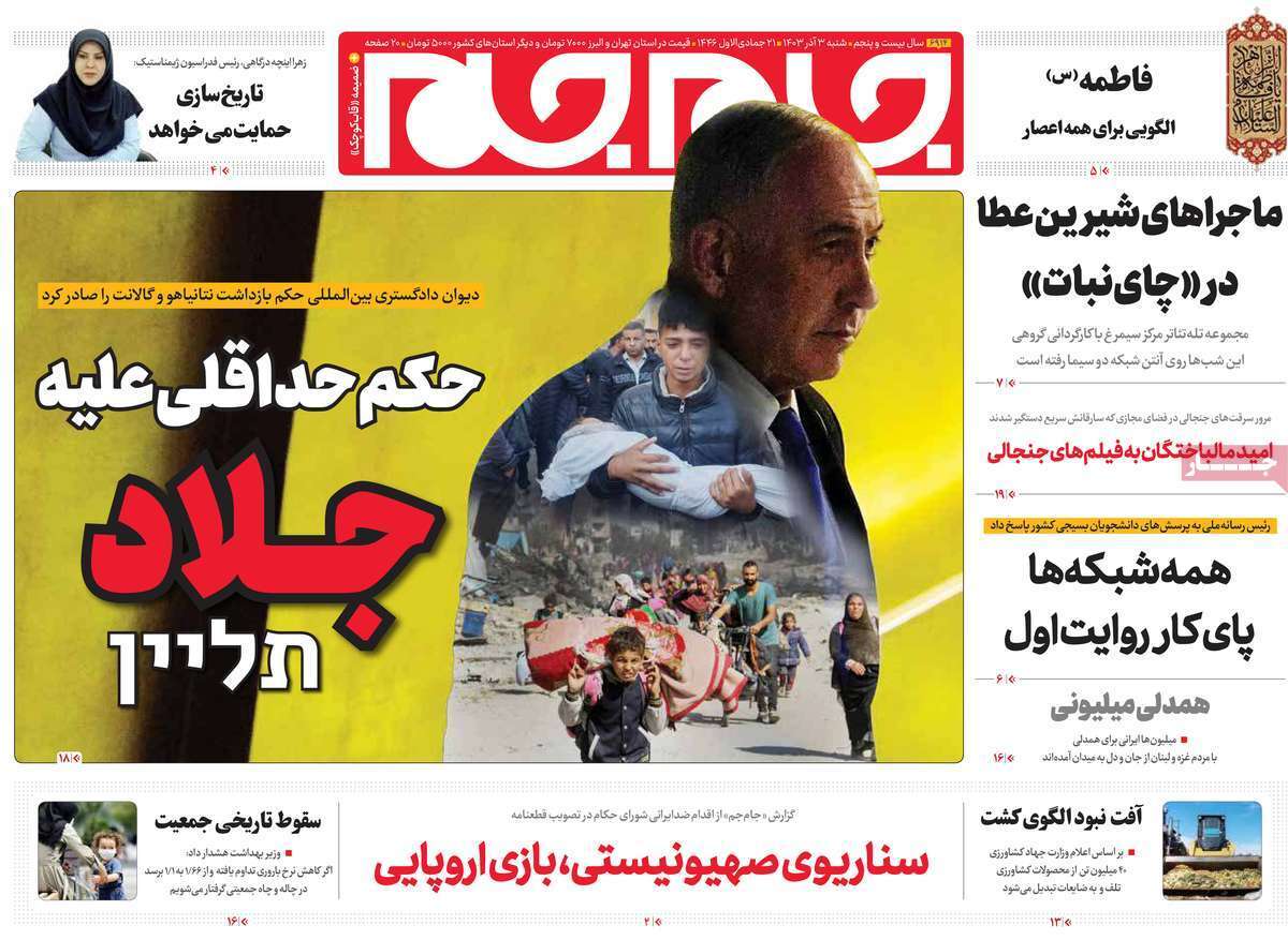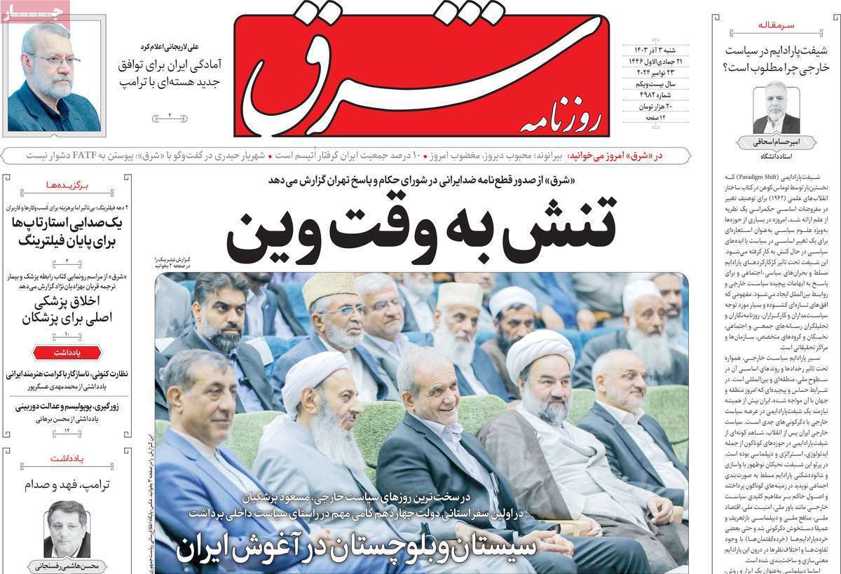 صفحه نخست روزنامههای شنبه ۳ آذر ۱۴۰۳ را که به جنایتکاران تحت تعقیب رژیم صهیونیستی، سیستان و بلوچستان در مدار تکریم و مهمترین رویدادهای ورزشی پرداختهاند؛ در ادامه مشاهده میکنید.